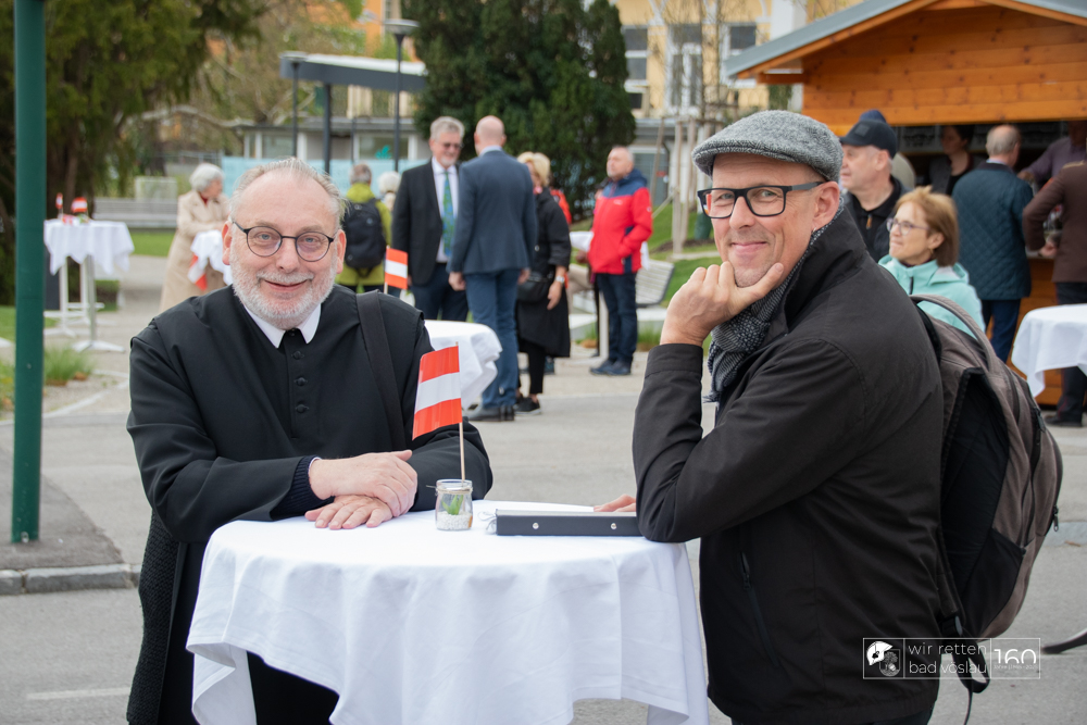 Und obwohl es während der Veranstaltung zu schütten begann, ließen sich die Besucherinnen und Besucher die Stimmung nicht verderben. Mit musikalischer Umrahmung des Blasorchester Bad Vöslau und einem Ausschank des Bad Vöslauer Weinbauvereins blieb die Atmosphäre feierlich und gemeinschaftlich.