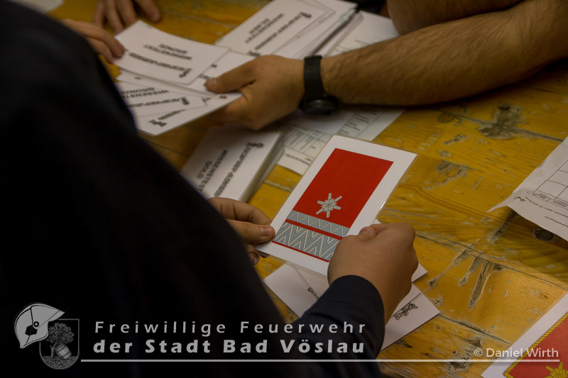 So mussten unsere jüngsten Feuerwehrmitglieder einige Geräte welche, auf Kärtchen dargestellt waren, erkennen, die richtigen Verhaltensweisen in verschieden Situationen anhand von Bildern erklären, die Notruf- und Zivilschutzalarmsignale erkennen und Fragen auf einem Testblatt richtig beantworten.