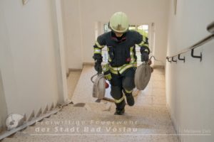Das Feuer konnte vom zweiten Atemschutztrupp rasch gelöscht werden. Um das Stiegenhaus rauchfrei zu halten und den sicheren Fluchtweg für die Hausbewohner und den Rettungsdienst zu gewährleisten wurde ein Überdruck im Treppenhaus mit Hilfe zweier Druckbelüfter aufgebaut.