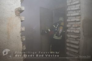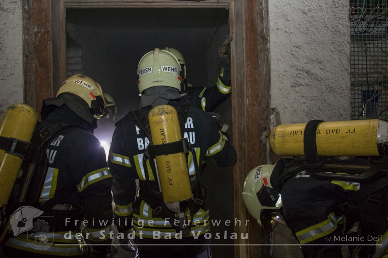 Als erstes war der Rettungswagen des Roten Kreuz Bad Vöslau am Einsatzort, die Sanitäter begannen daher mit einer ersten Lagefeststellung. Kurze Zeit später war auch das Tanklöschfahrzeug vor Ort, der Gruppenkommandant stellte schnell fest, dass es im Dachboden brennt, auf dem Weg nach oben fanden die Einsatzkräfte eine junge Frau vor. Sie stürzte bei der Flucht über das Stiegenhaus und konnte nun ihre Beine nicht mehr bewegen.
