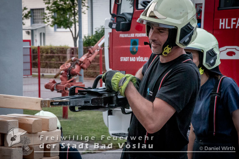 Theoretische Grundlagen und Handhabung des hydraulischen Rettungsgerätes. Auf den ersten Blick ein trockenes Übungsthema – doch das Vöslauer Ausbildungsteam hat sich am 24. Juni 2022 etwas Besonderes einfallen lassen.