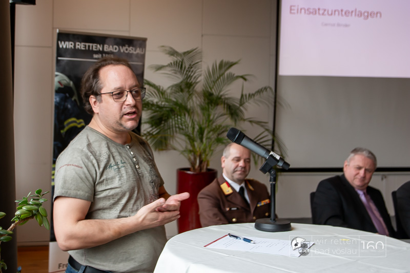 Ehrenmitglied der Bad Vöslauer Stadtfeuerwehr und ehemaliger Vizebürgermeister von Bad Vöslau Gerhard Sevcikbeendete die Runde der Ansprachen mit einer emotionalen Rede, bei den schweren Unwettern im September war er selbst betroffen, seine Kameraden konnten jedoch schnell und professionell helfen – dafür sprach er allen anwesenden Mitgliedern seinen Dank aus.