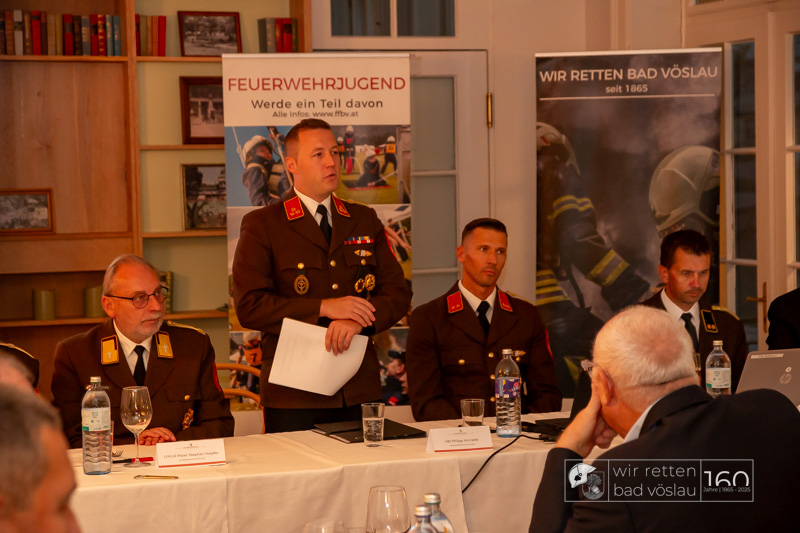 In seinem Bericht blickte Kommandant Michalek auf 160 Jahre Feuerwehrgeschichte zurück. „Wir retten Bad Vöslau. Seit 1865.“ – mit diesem Leitsatz beschrieb er den Geist, der die Feuerwehr seit ihrer Gründung prägt. Er erinnerte an die Anfänge im Jahr 1865, als engagierte Bürger unter der Leitung von Feuerkommissär Dominik Brümmer beschlossen, nach einem Großbrand in Leobersdorf auch in Vöslau eine Feuerwehr zu gründen. Aus bescheidenen Mitteln, aber mit großem Idealismus, entstand eine Organisation, die bis heute Bestand hat.