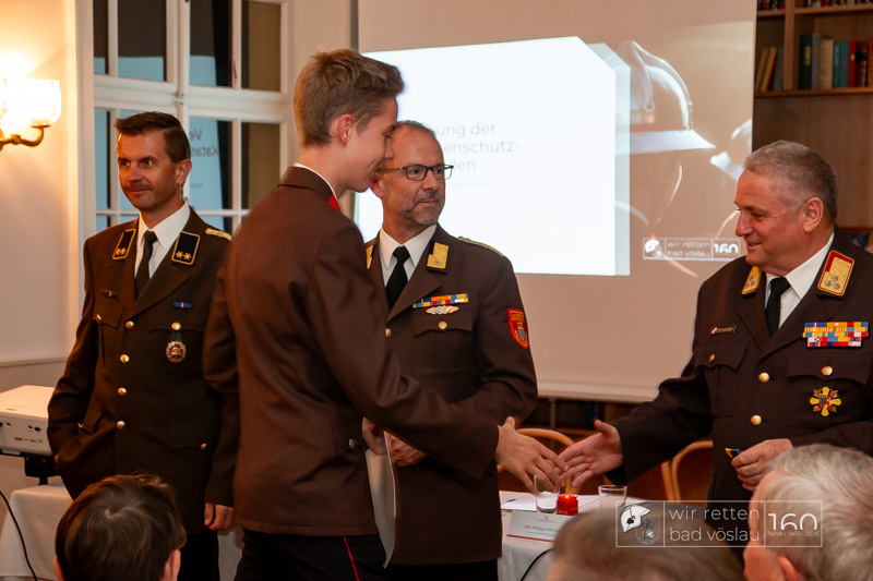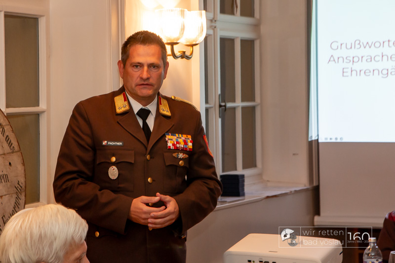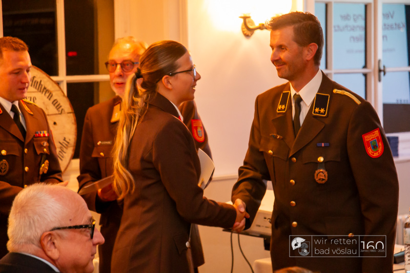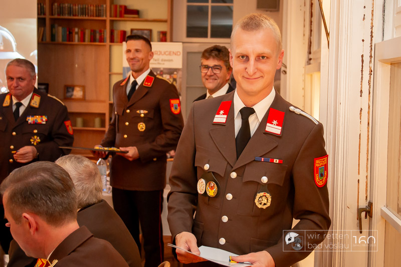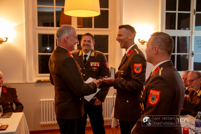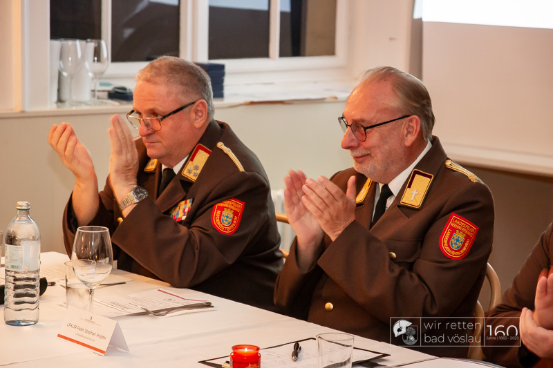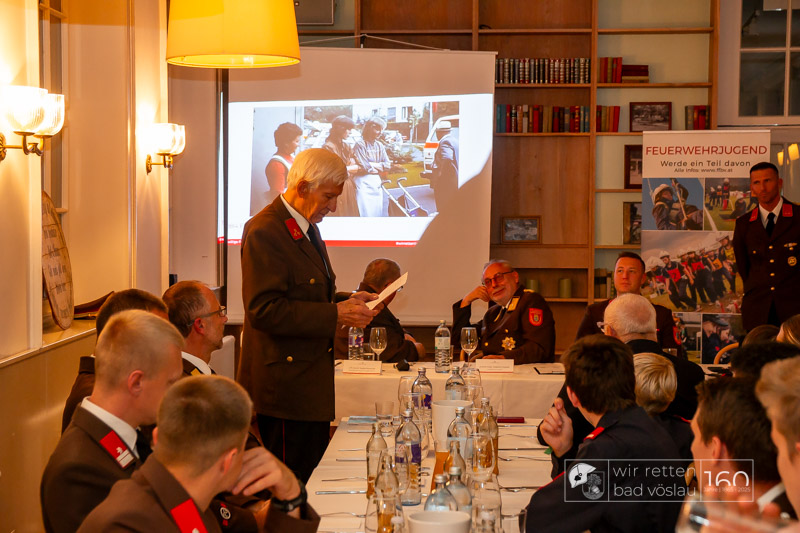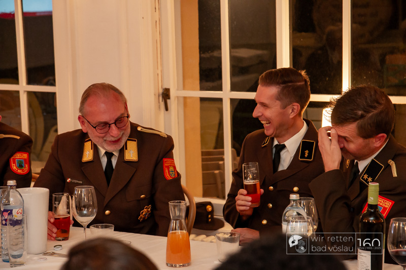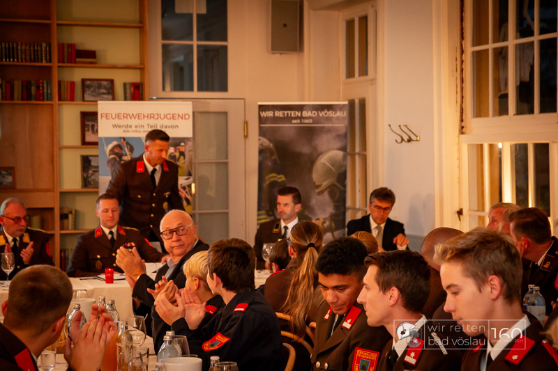 Zum Abschluss bedankte sich Kommandant Michalek bei allen Ehrengästen für ihre wertschätzenden Worte und beendete die Versammlung mit einem aufrichtigen „Gut Wehr!“. Im Anschluss wurde in der Kabane 21 bei Speis und Trank, zubereitet vom Team des Hauses, in festlicher Atmosphäre gefeiert. Gemeinsam blickte man auf 160 Jahre Feuerwehrgeschichte zurück – und auf eine Zukunft, in der die Freiwillige Feuerwehr Bad Vöslau weiterhin mit Einsatz und Herzblut für die Sicherheit der Bevölkerung sorgt.
