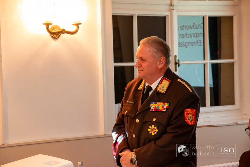 In den anschließenden Grußworten dankte Bürgermeister Christian Flammer der gesamten Mannschaft für ihren unermüdlichen Einsatz und betonte die Bedeutung der Feuerwehr für die Stadtgemeinde. Ehrenmitglied Bgm. a.D. Gerhard Sevcik würdigte die Leistungen der Wehr ebenfalls und erzählte, dass auch er beim Unwetter 2024 auf die Hilfe der Feuerwehr angewiesen war. Den Abschluss der Ansprachen bildete LFR Anton Kerschbaumer, der die FF Bad Vöslau als eine der ältesten Feuerwehren des Bezirks und Landes hervorhob und die hervorragende Zusammenarbeit lobte.