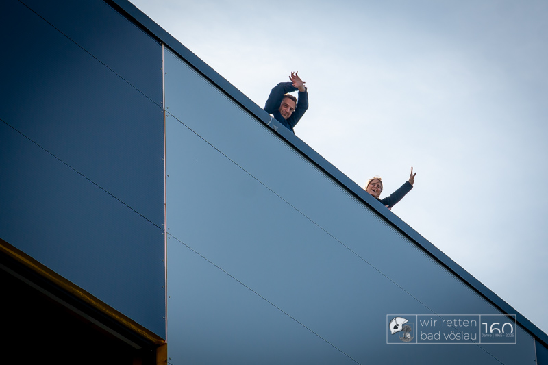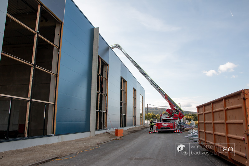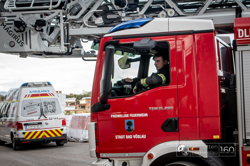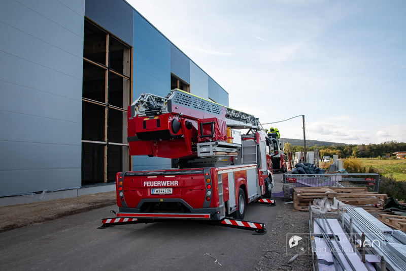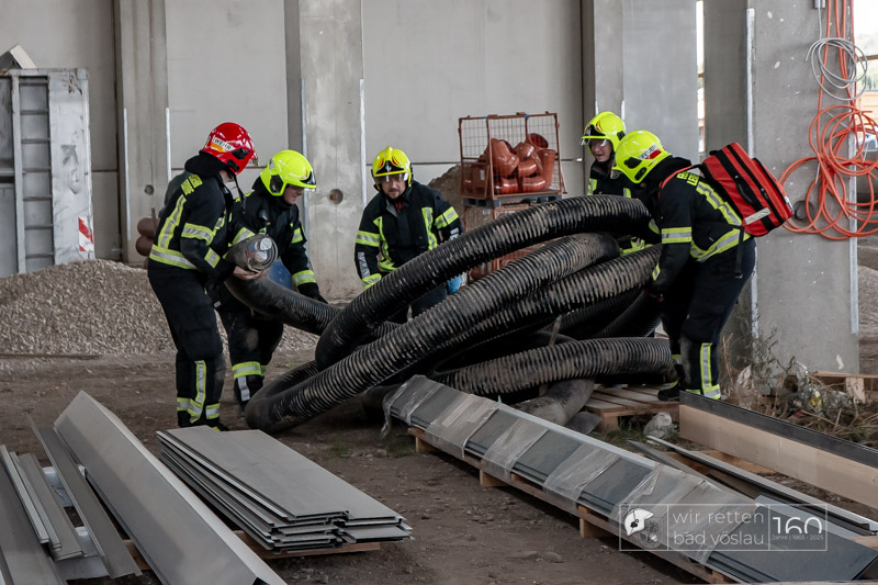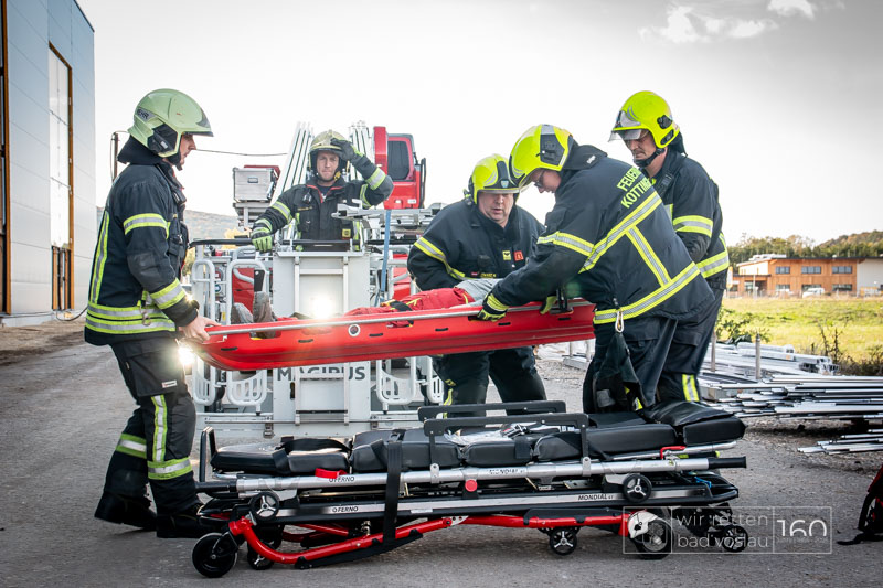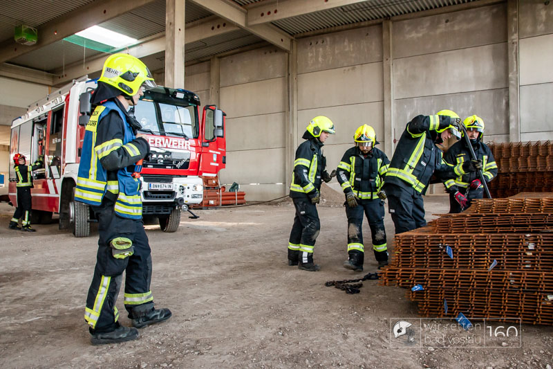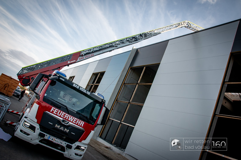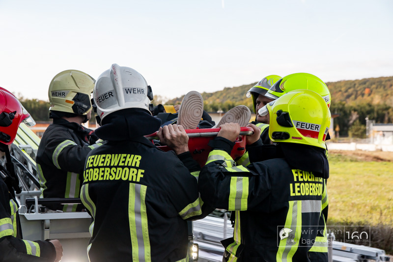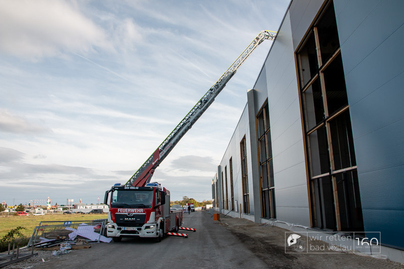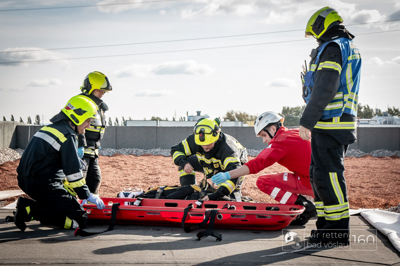 Die Drehleiter Bad Vöslau wurde von Einsatzkräften aus Kottingbrunn und Leobersdorf sowie dem Roten Kreuz bei der Menschenrettung vom Hallendach unterstützt. Zum Teil konnten die Menschen noch selbst in den Drehleiterkorb einsteigen, zum Teil mussten sie mit der Krankentragenaufnahme und Korbschleiftragen von dem Dach gehoben werden.