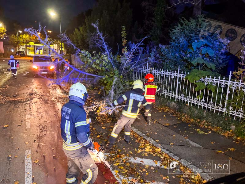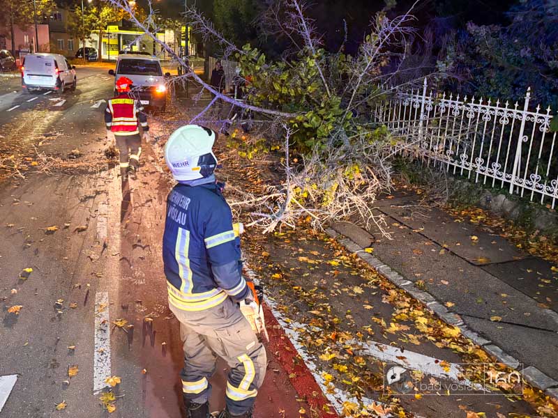 In den Morgenstunden des 24. Oktober 2025 wurde die Bad Vöslauer Stadtfeuerwehr nach einer stürmischen Nacht zu einem umstürzten Baum im Zentrum von Vöslau gerufen.
