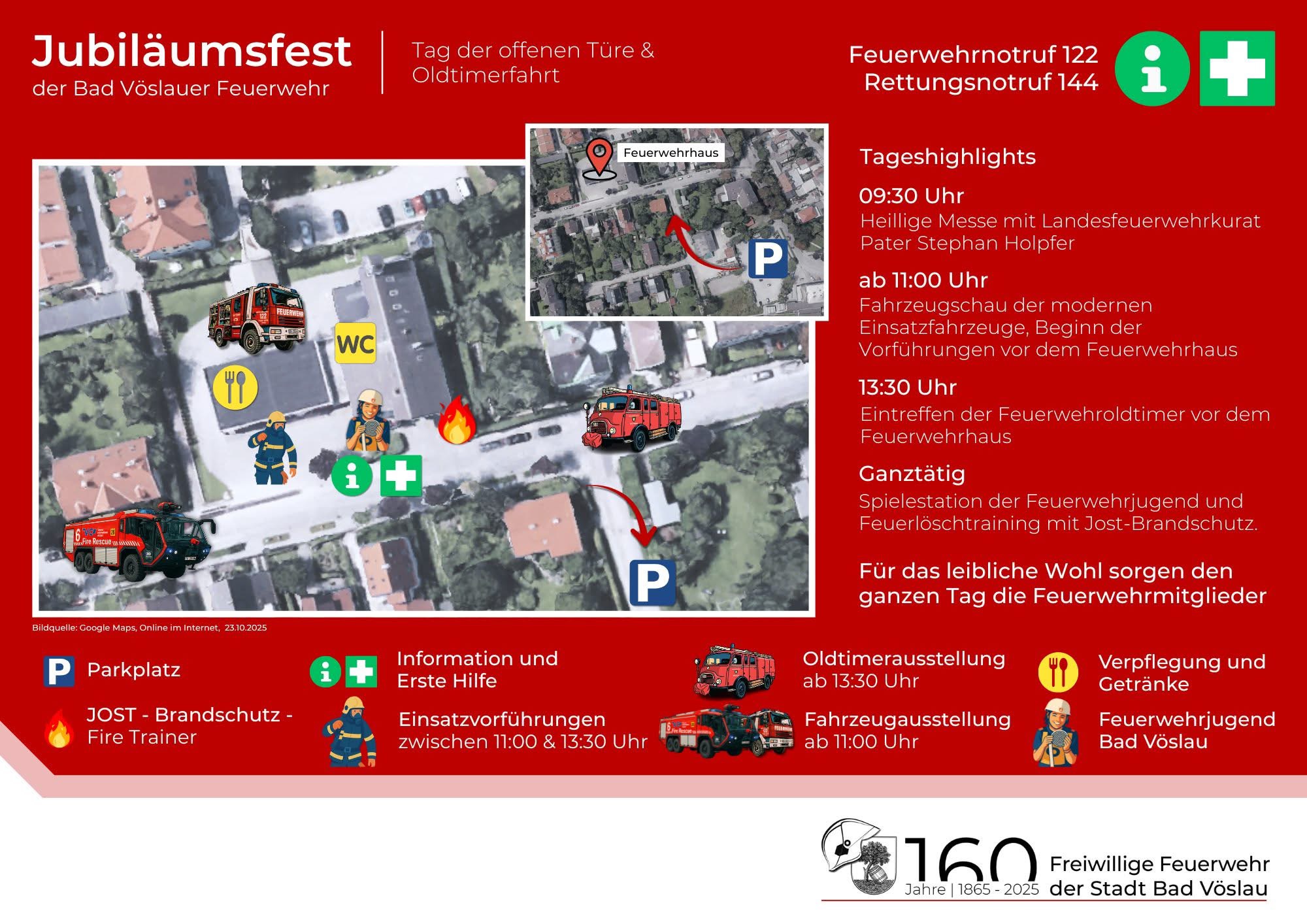 Ab 09:30 Uhr öffnen wir unsere Tore zum großen Jubiläumsfest. Bis 17:00 Uhr gibt es eine große Fahrzeugschau mit hochmodernen Einsatzfahrzeugen und Oldtimern, Vorführungen und auch die Möglichkeit selbst ein Feuer zu löschen! 🥳