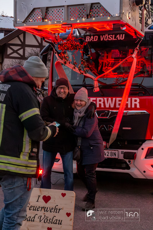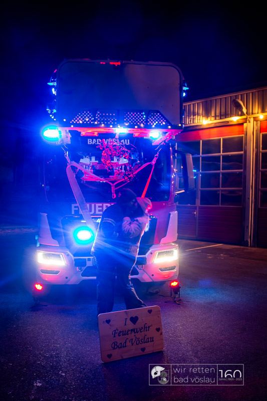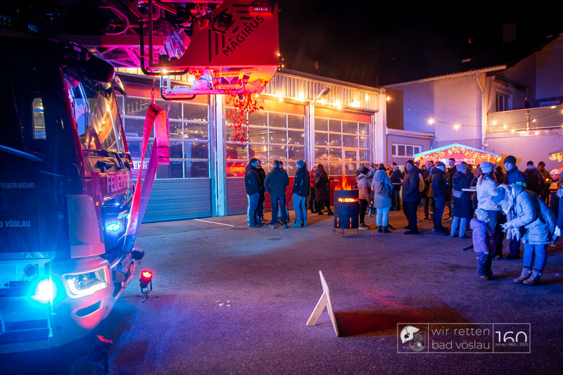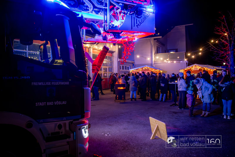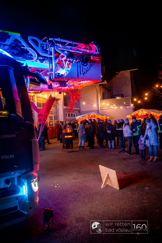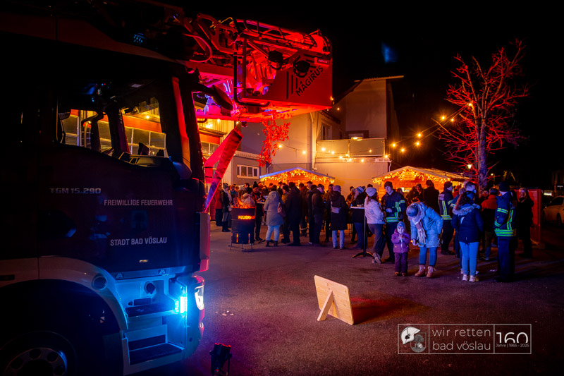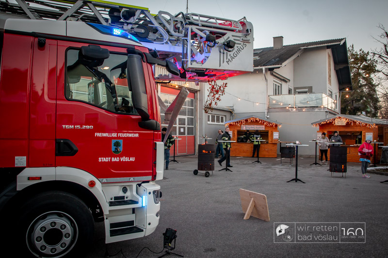 Ein Highlight in diesem Jahr war die festlich geschmückte Drehleiter, mit Lichtkette und Mistelzweig war das neueste Einsatzfahrzeug eine romantische Fotokulisse für die Gäste der Punschhütte.