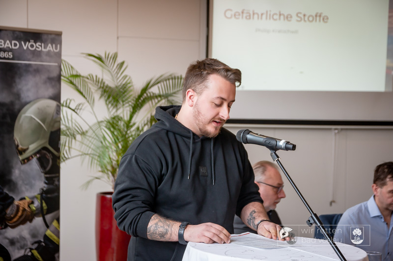 In seinem Bericht konnte Feuerwehrkommandant Philipp Michalek auf ein turbulentes und arbeitsreiches Jahr zurückblicken. Er blickte neben einigen erwähnenswerten Einsätzen, wie zum Beispiel einem Verkehrsunfall am Autobahnzubringer mit zwei schwerverletzten Menschen im April auch auf ein spannendes Ausbildungs- und Bewerbsjahr zurück. Um sich ständig weiterzuentwickeln wurden 60 Ausbildungs- bzw. Übungseinheiten durchgeführt. Auch auf dem Bewerbssektor waren die Bad Vöslauer Feuerwehrmitglieder wieder auf Edelmetalljagd, gleich zwei Feuerwehrmitglieder bewiesen bei den Bewerben um das Wasserdienstleistungsabzeichen in Gold sowie um das Feuerwehrleistungsabzeichen in Gold ihr umfangreiches Feuerwehrwissen.
