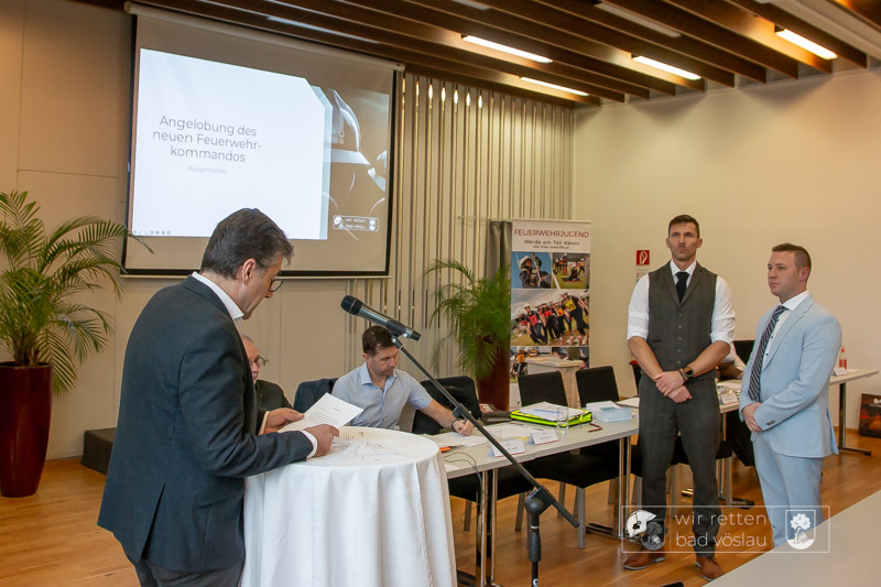 Nach der Auszählung der 61 Wählerstimmen konnten Feuerwehrkommandant Philipp Michalek und Stellvertreter Christian Hoffmann erneut angelobt werden. Als eine der ersten Amtshandlungen wurde Alexander Sebestik erneut zum Leiter des Verwaltungsdienstes ernannt. Damit ist das neue alte Feuerwehrkommando komplett, die einzelnen Fachchargen und Sachbearbeiter werden in einem zweiten Termin im Jänner angelobt bzw. ernannt.