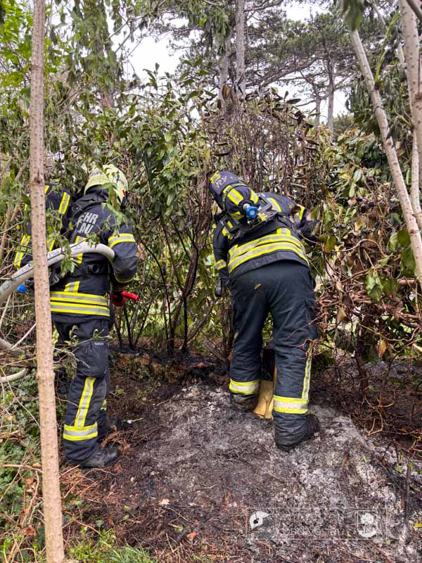 Beim Eintreffen der Feuerwehreinsatzkräfte wurde ein Bodenfeuer im Wald unmittelbar neben einem Wohnhaus vorgefunden. Sofort wurde eine Löschleitung von einem Hilfeleistungsfahrzeug vorgenommen und mit der Brandbekämpfung begonnen.