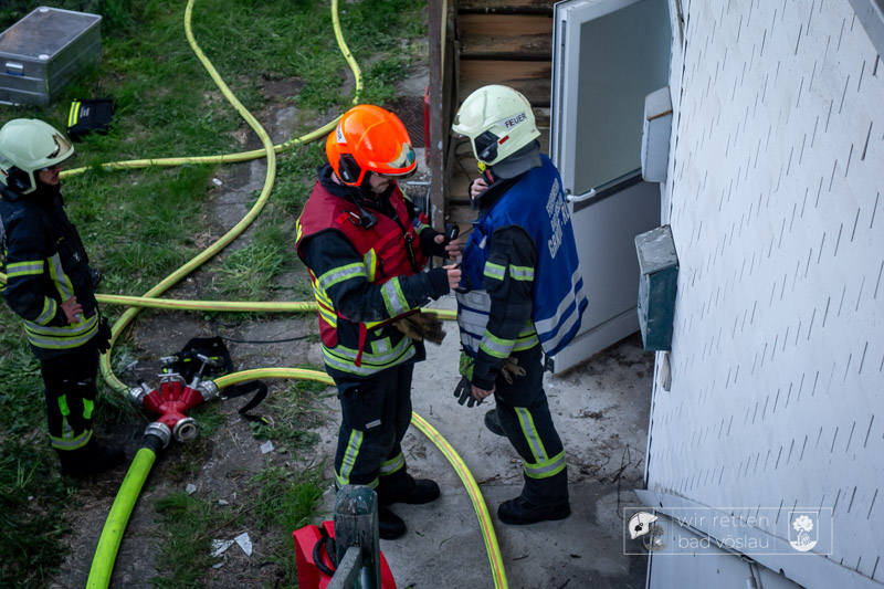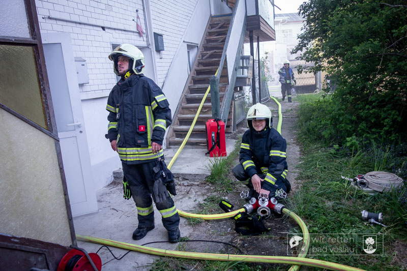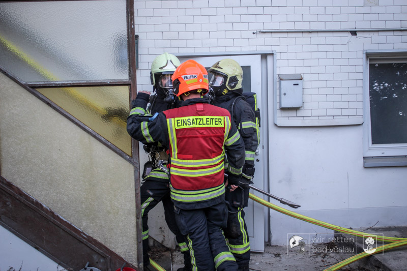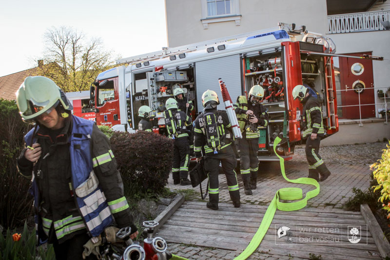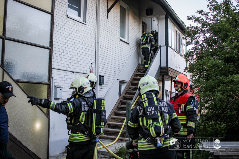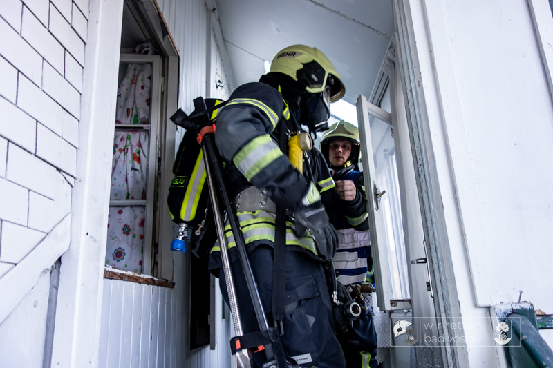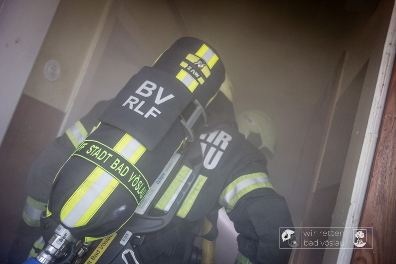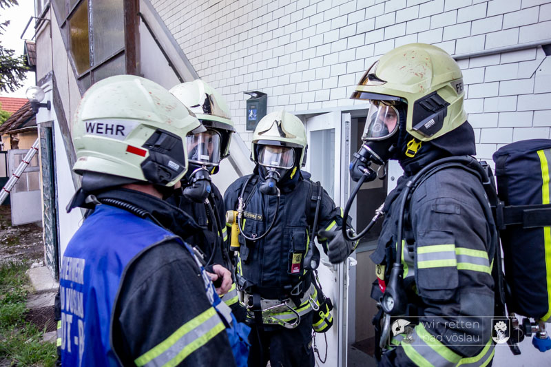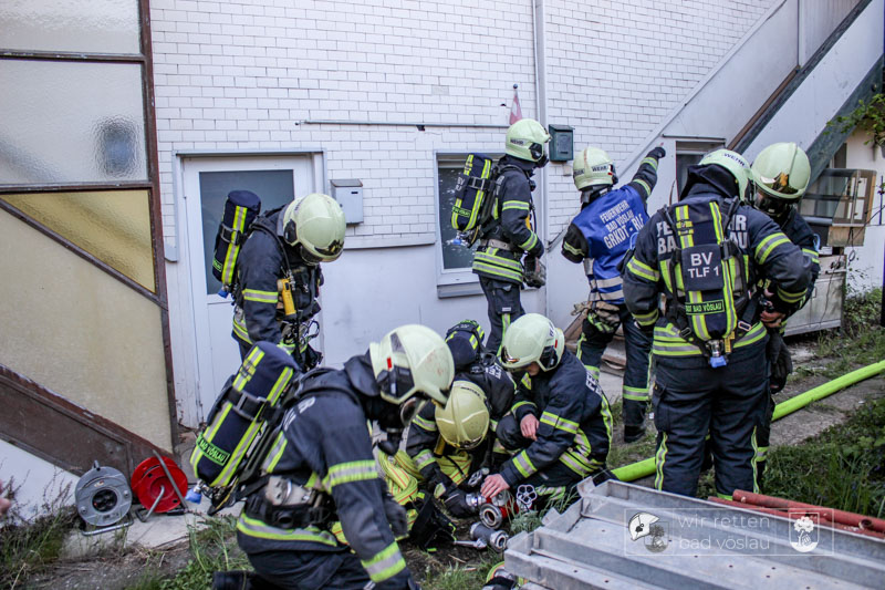 Einsatzleiter Lukas Mehlstaub fand eine eher chaotische Lage vor: Dichter Rauch drang aus einem Wohnhaus, mehrere Personen riefen verzweifelt um Hilfe. Als Erstmaßnahme wurde eine Person mittels Teleskopleiter aus dem 1. Obergeschoss gerettet, parallel dazu konnten die Feuerwehreinsatzkräfte eine Löschleitung aufbauen. Der Gruppenkommandant des zweiten Löschfahrzeuges konnte bei seiner Erkundung gleich eine Person aus dem Brandobjekt retten. Die beiden Atemschutztrupps nahmen zeitgleich jeweils eine Löschleitung vor. Die Bauweise machte es sehr schwierig, ein ganzheitliches Lagebild zu bekommen, dennoch konnten die beiden Trupps das Feuer rasch finden und noch zwei weitere Personen retten.