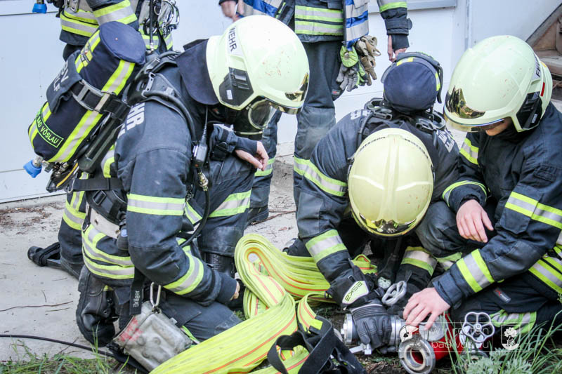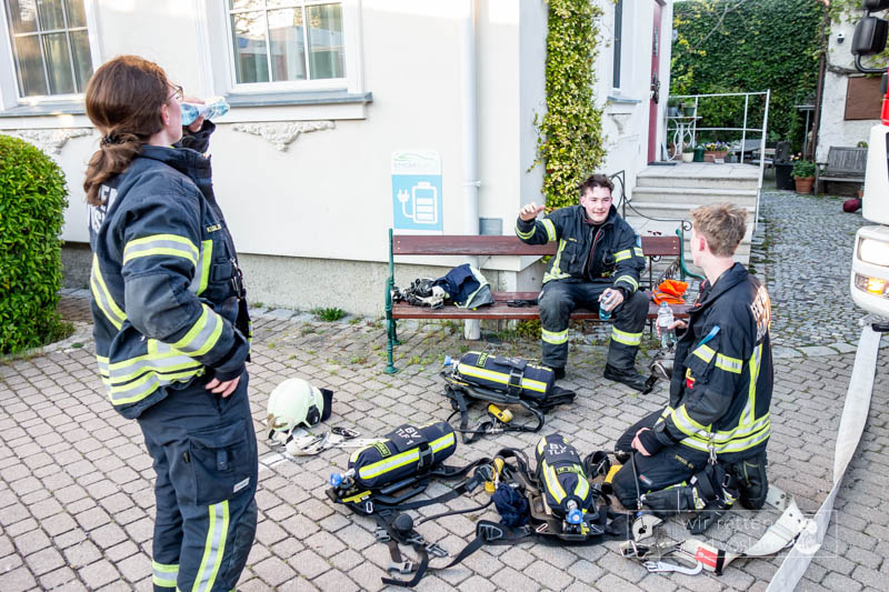 Nachdem alle Personen gerettet waren und der Brand gelöscht wurde, konnte die erfolgreiche Übung beendet werden. Die Atemschutztrupps setzten die in den Vorwochen erlernten Techniken zum hygienischen Abrüsten sogleich in die Tat um.