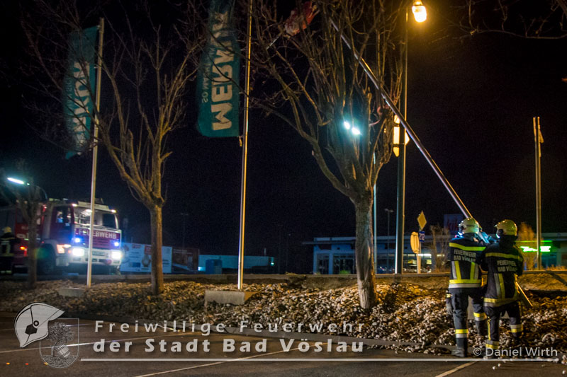 musste ein umgeknickter Fahnenmast von den Einsatzkräften abmontiert und