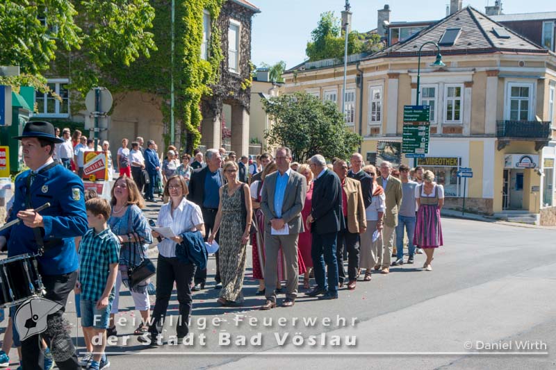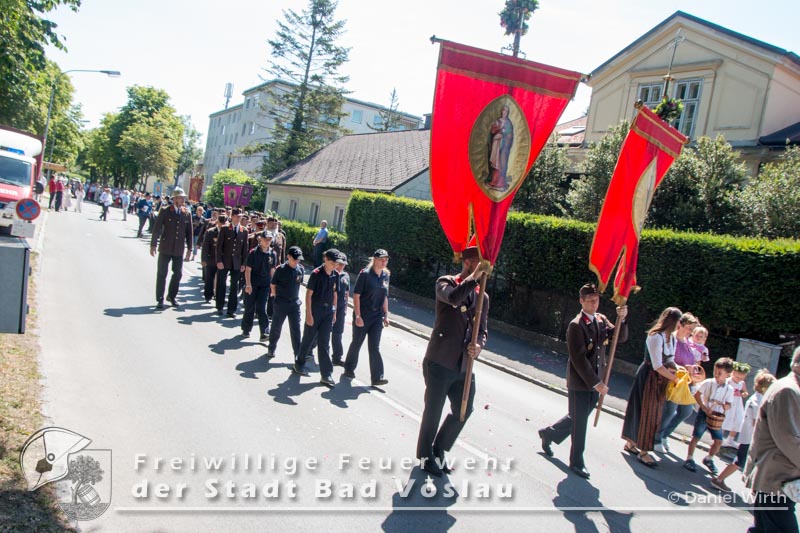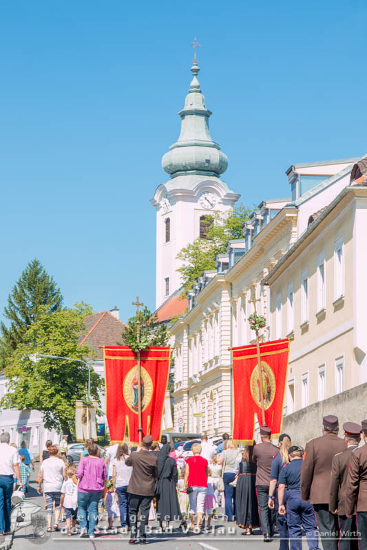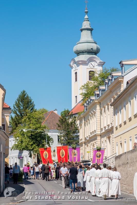 Wie in jedem Jahr nahm die Freiwillige Feuerwehr der Stadt Bad Vöslau mit einer großen Abordnung und der Feuerwehrjugend an der Fronleichnamsprozession von Bad Vöslau nach Gainfarn teil. Von den Freiwilligen Feuerwehren Großau und Gainfarn nahmen ebenfalls das Kommando teil. Unser Kamerad Landesfeuerwehrkurat Pater Stephan Holpfer und Kaplan Gabriel Mapulanga führten durch die Heillige Messe in Bad Vöslau und Gainfarn. Die Prozession durch die Stadt Bad Vöslau und den Ortsteil Gainfarn führte Feuerwehrkommandant Markus Hoffmann. Im Anschluss lud die Pfarre Gainfarn noch zum Pfarrheurigen.