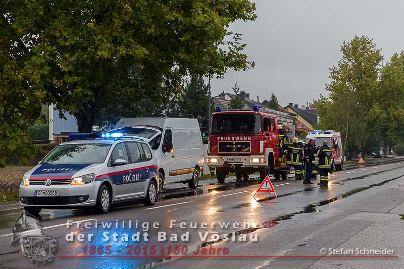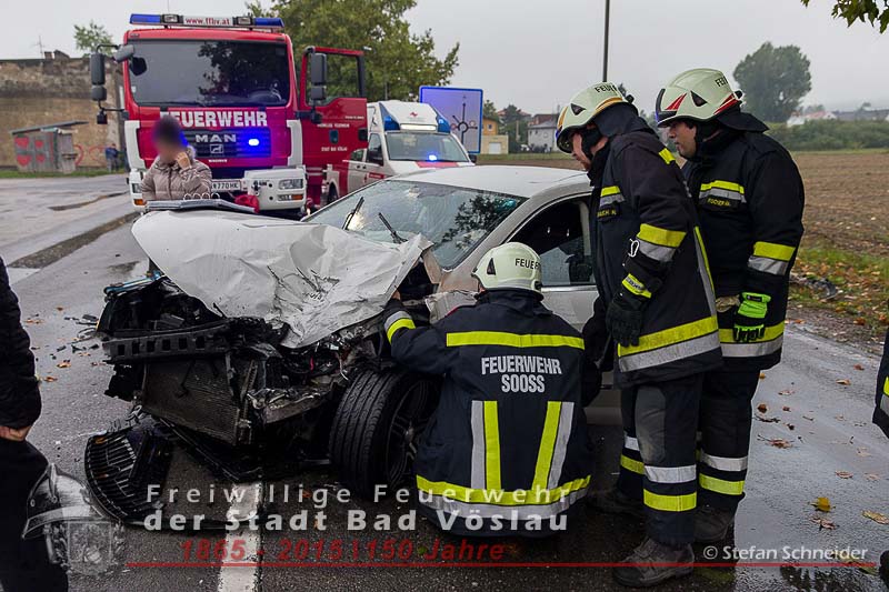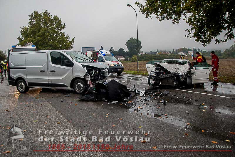 Zu einem Frontalzusammenstoß zwischen einem Kleintransporter und einem Pkw kam es auf der B212 in den späten Nachmittagsstunden des 15. Oktober 2015 im Gemeindegebiet von Sooß Bezirk Baden.
