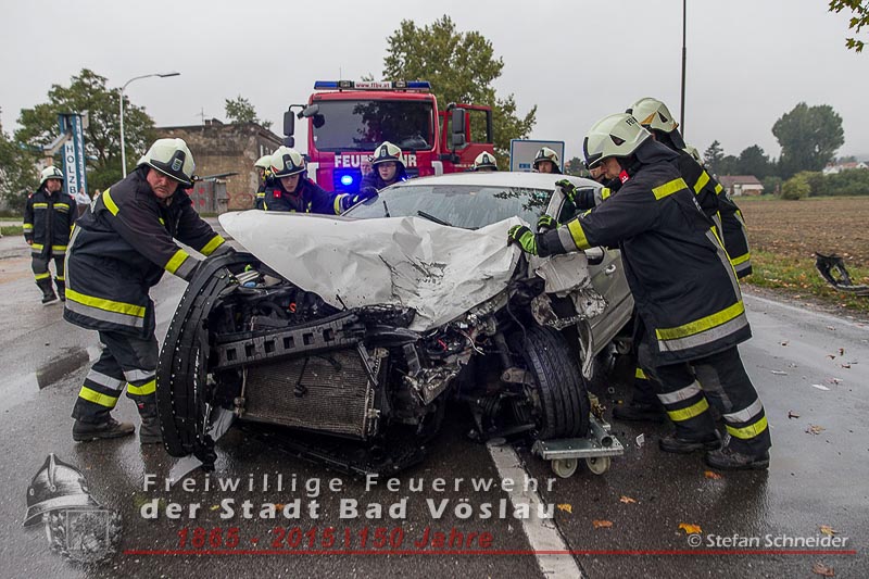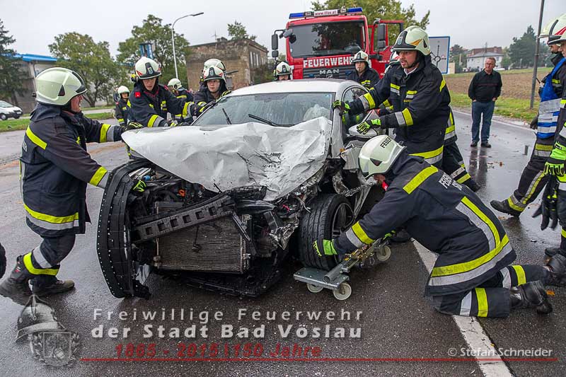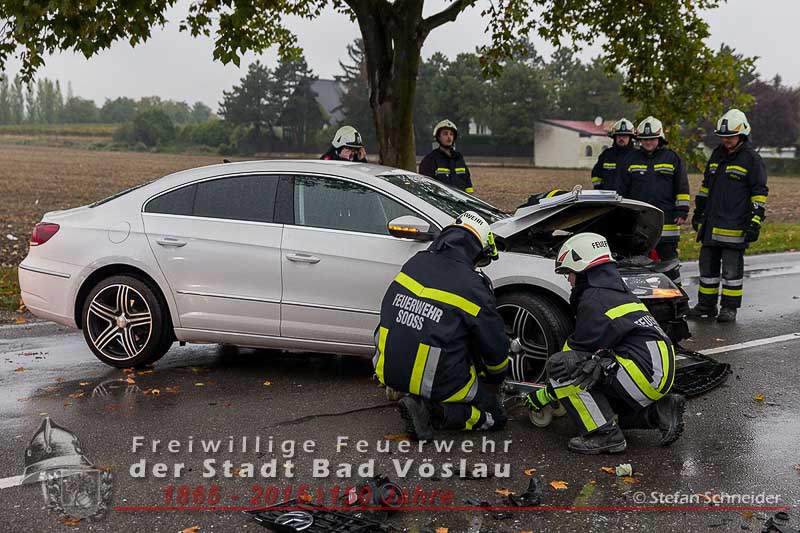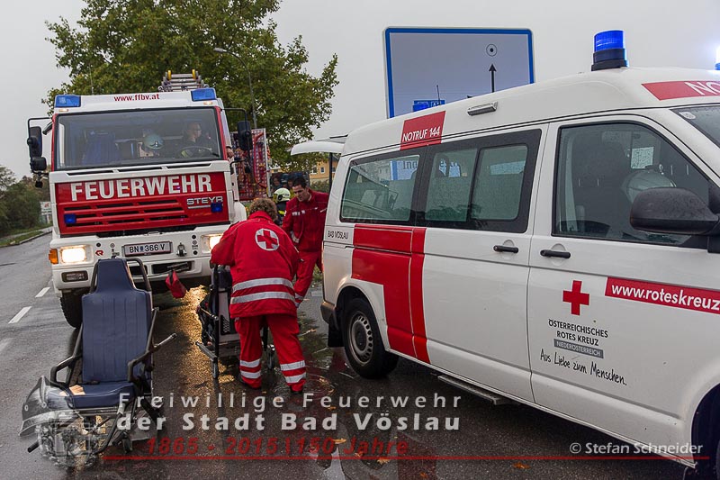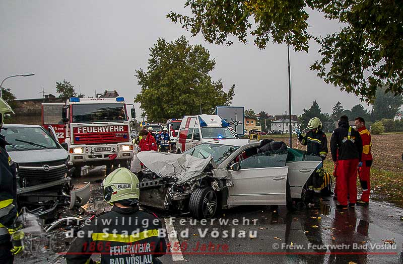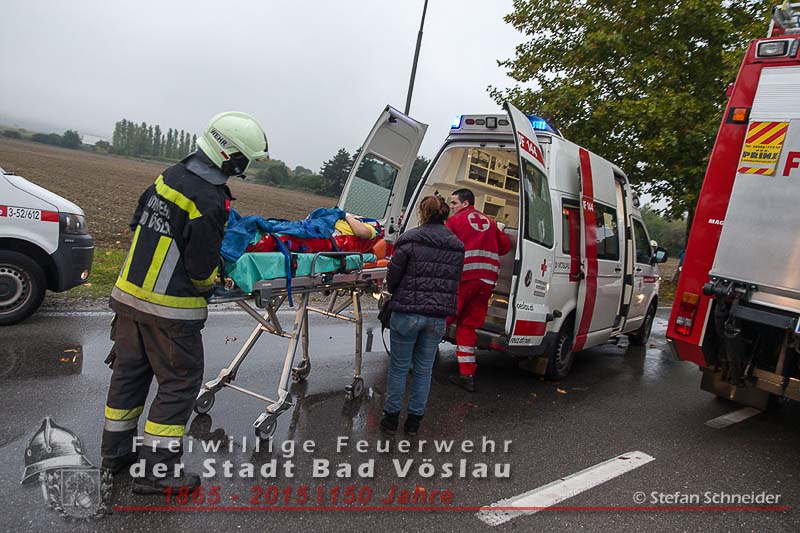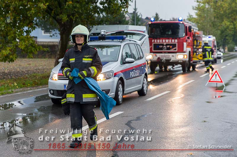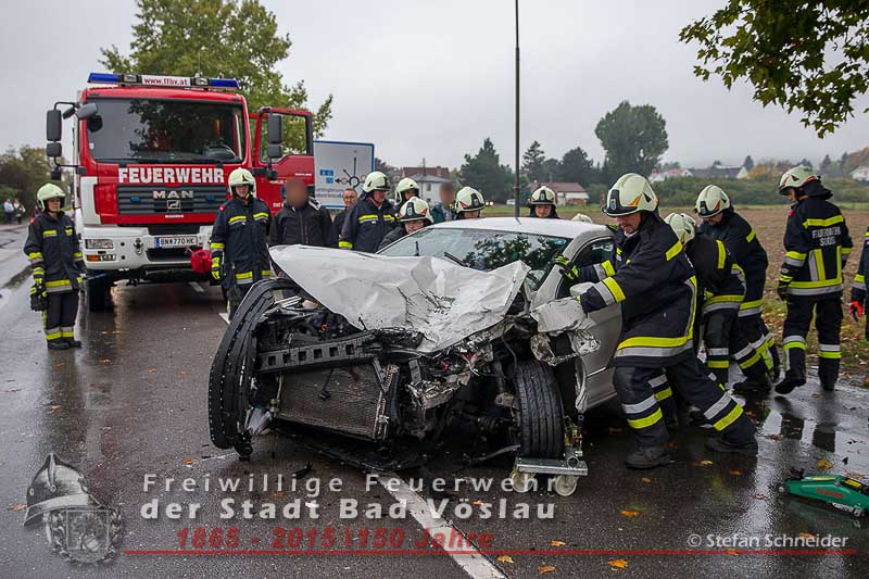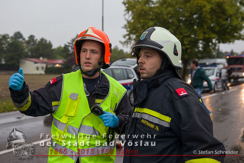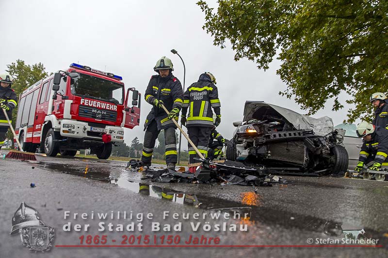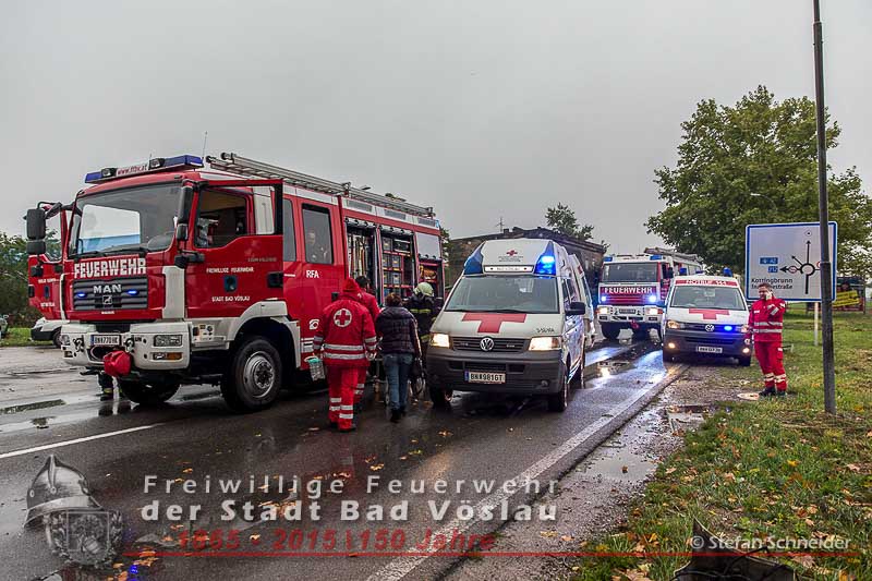 Die Feuerwehreinsatzkräfte unterstützten das ebenfalls alarmierte Notarztteam bzw. die Rettungskräfte bei der Versorgung des verletzten Kindes. Dieses wurde mit Verletzungen unbestimmten Grades mit einen Rettungsfahrzeug vom Roten Kreuz Bad Vöslau ins Spital eingeliefert. Nach der Freigabe der Unfallwracks durch die Polizeibeamten wurden die schwer beschädigten Fahrzeuge von den Feuerwehreinsatzkräften geborgen und gesichert abgestellt. Ebenso mussten von diesen auslaufende Betriebsmittel gebunden und zahlreiche, über beide Fahrstreifen, verteilte Fahrzeugteile beseitigten. Für die Dauer der Aufräumarbeiten musste die stark befahrende Landesstraße im Unfallbereich komplett gesperrt werden. Trotz sofort eingerichteter Umleitung durch die Polizeieinsatzkräfte, kam es zu erheblichen Behinderungen im Abendverkehr zwischen Bad Vöslau und Baden.