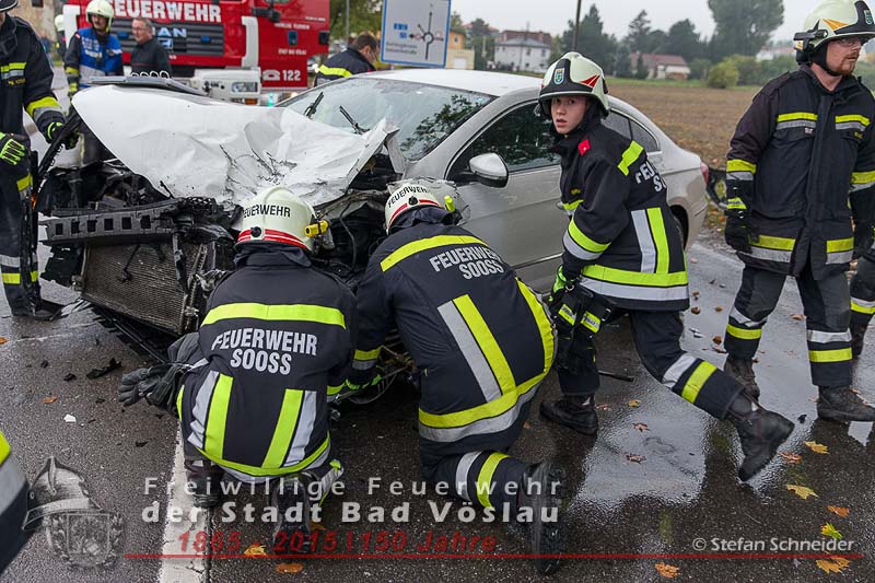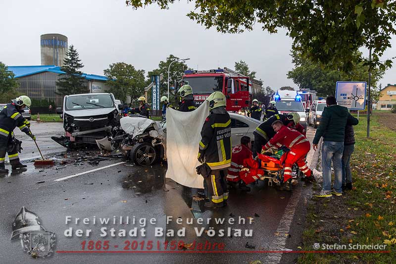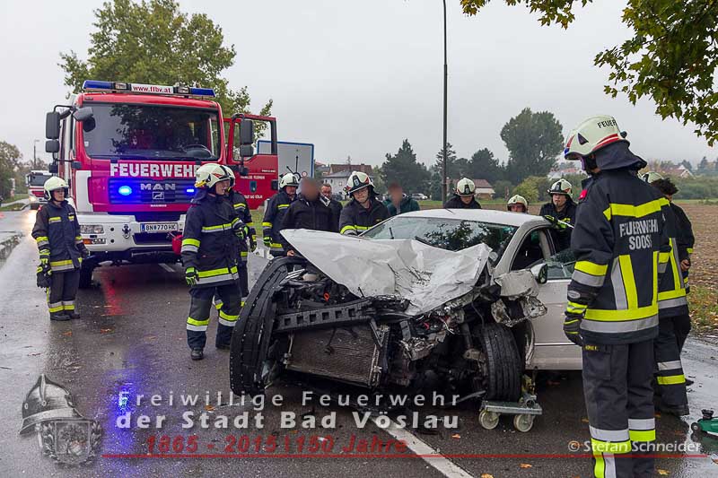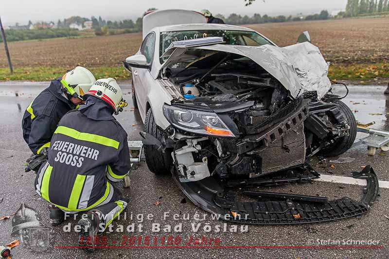 Aus unbekannter Ursache prallten gegen 17 Uhr die beiden Fahrzeuge zwischen Sooß und Bad Vöslau zusammen. Die anfängliche Meldung über ein noch im Unfallwrack eingeklemmtes Kind bestätigte sich beim Eintreffen der alarmierten Einsatzkräfte glücklicherweise nicht.