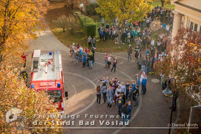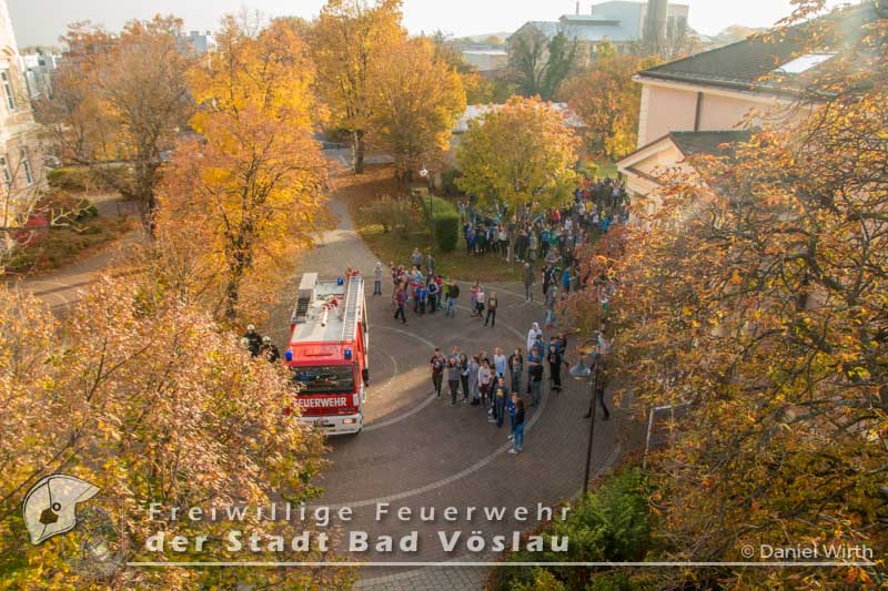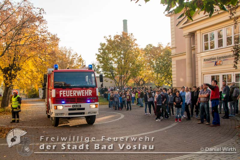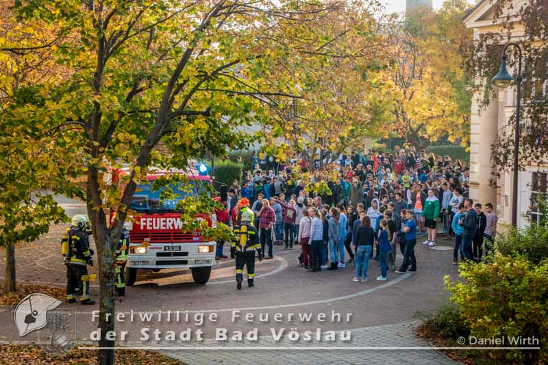 Räumungsübung in der neuen Mittelschule in Bad Vöslau Am vergangen Freitag fand in der Sportmittelschule eine Räumungsübung im laufenden Schulbetrieb statt. Nachdem der Feueralarm ausgelöst wurde, begaben sich alle Klassen mit ihren Lehrern über die Fluchtwege ins Freie. Die Freiwillige Feuerwehr der Stadt Bad Vöslau rückte mit einem Tanklöschfahrzeug und der Drehleiter an um den Brand zu löschen. Nach gut einer halben Stunde konnten alle Schüler wieder zurück in ihre Klassen. Diese Übung zeigte den guten Ablauf der Räumung und die Zusammenarbeit mit den Einsatzkräften.