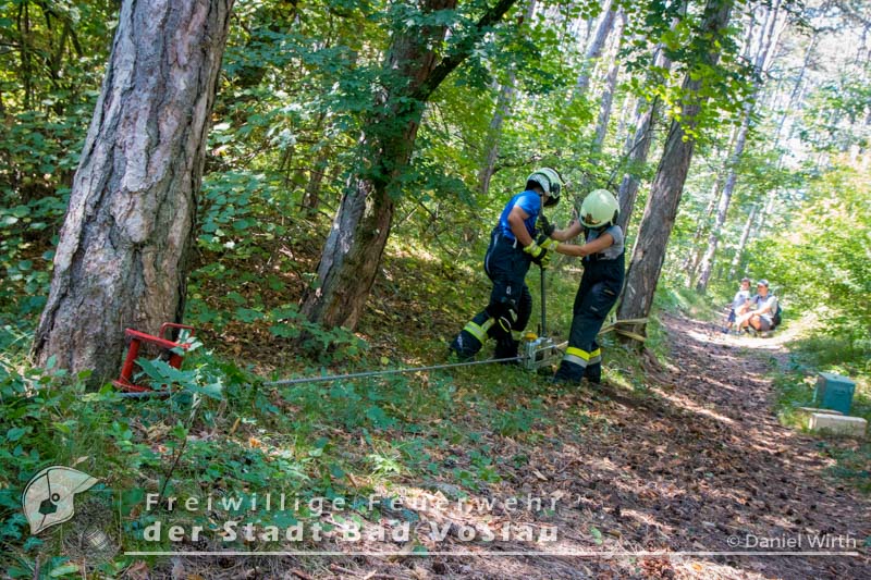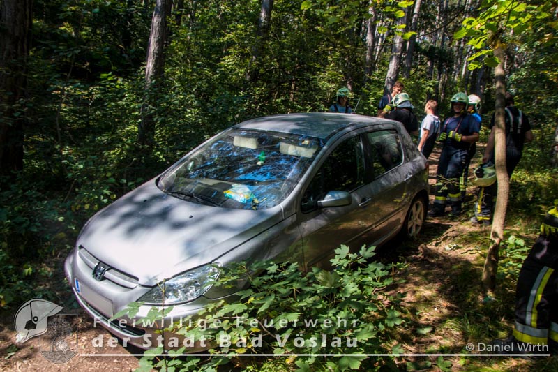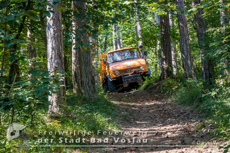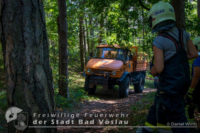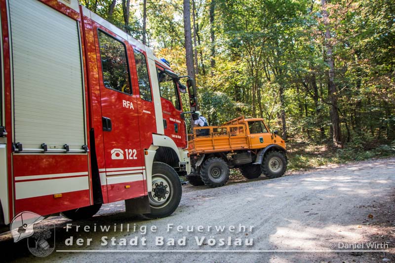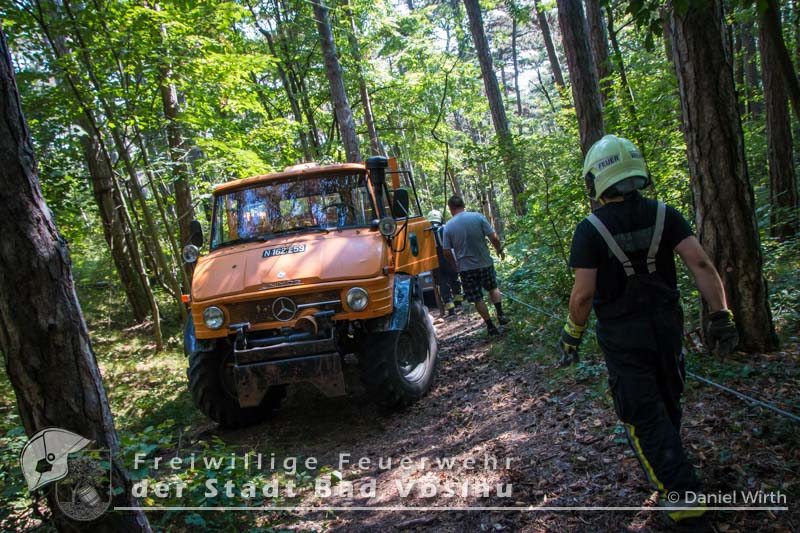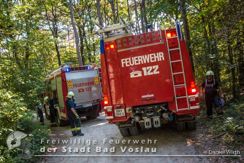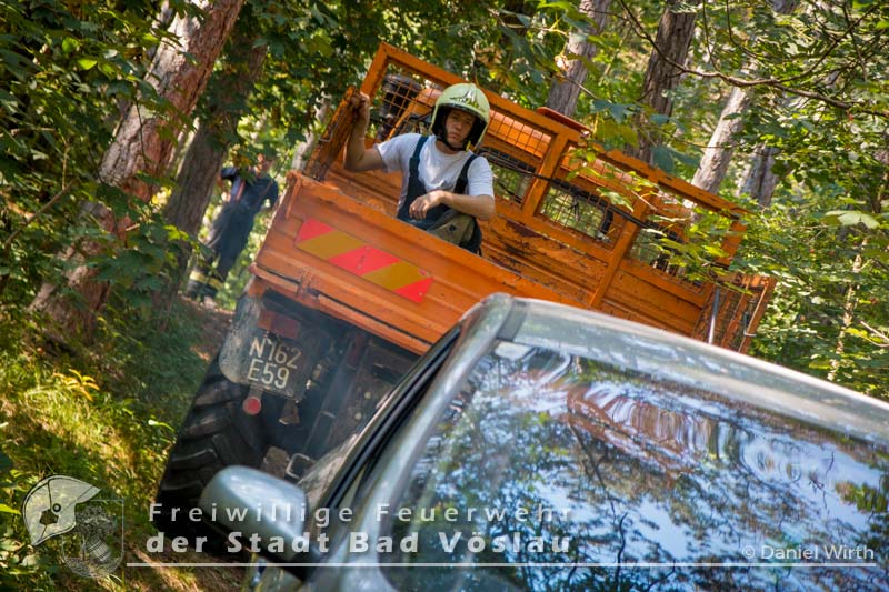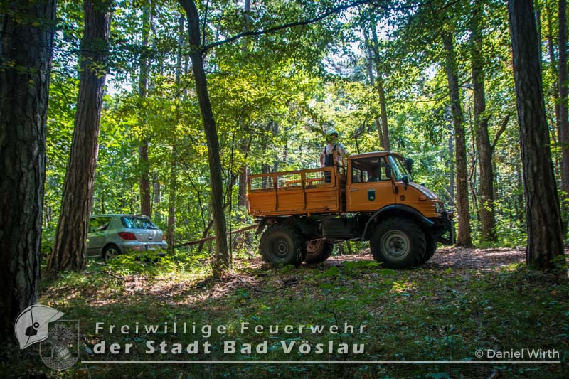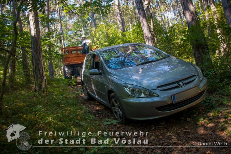 In den Mittagsstunden des 10. September wurde die Freiwillige Feuerwehr der Stadt Bad Vöslau zu einer Fahrzeugbergung im Stadtgebiet gerufen. Ein Fahrzeug soll auf der Zufahrtsstraße zur Jubiläumswarte von der Fahrbahn abgekommen sein. Bei Eintreffen des Rüstfahrzeuges an der Unfallstelle war bereits eine Streife der Polizei vor Ort. Der Gruppenkommandant staunte nicht schlecht als er die Lage erkundete. Ein PKW war rund 300m über einen schmalen und steinigen Wanderweg in den Wald gefahren und konnte jetzt weder vor noch zurück. Mit dem Greifzug zogen die freiwilligen Einsatzkräfte das Fahrzeug ein paar Meter den Wanderweg hoch. Parallel dazu wurde über den Bereitschaftsdienst der Stadtgemeinde ein Unimog angefordert. Mit dem geländegängigen Waldfahrzeug wurde der PKW vorsichtig über den Wanderweg wieder hoch zur Harzbergstraße gezogen. Dort stellten die Einsatzkräfte das Fahrzeug gesichert ab. Dieser aufwendige Einsatz forderte die Besatzungen des Rüst- und Rüstlöschfahrzeuges über 2 Stunden. Bericht und Fotos: Daniel Wirth, ASB ÖA Beitrag erstellt am: 10.09.2016