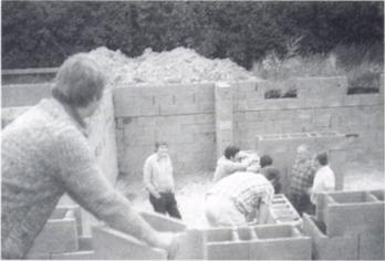 Viele Feuerwehrkameraden legten unter der Anweisung von “Polier“ Brandtner, Hand an, um die Fundamente der Garage und den Keller in Eigenarbeit herzustellen. Einziger freiwilliger Helfer der nicht Mitglied unserer Wehr gewesen ist, war Herr Schindler aus der Alleegasse. Der Weinhauer J. Buchart war ebenfalls der einzige Vöslauer, der die Männer mit Getränken versorgte. So nahm der Neubau bereits im 1. Jahr einen guten Verlauf. Am 10. Dez. verstarb unser Ehrenkommandant Hans Lang. Nach der Schließung der Kammgarnfabrik und der Auflösung der Werksfeuerwehr fanden die Kameraden bei der FF Vöslau Aufnahme.