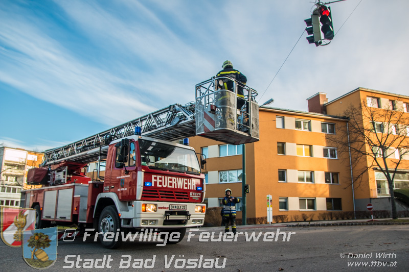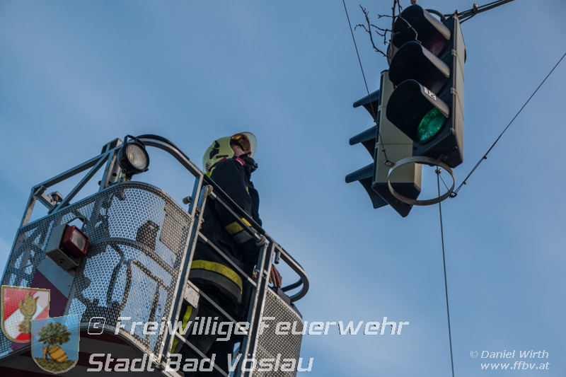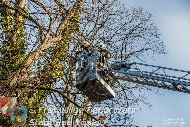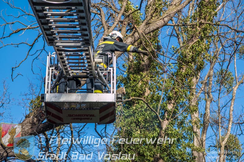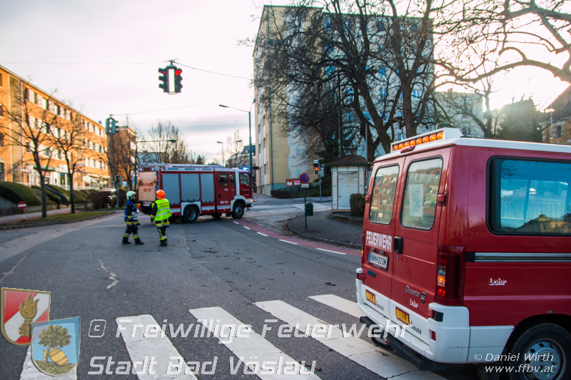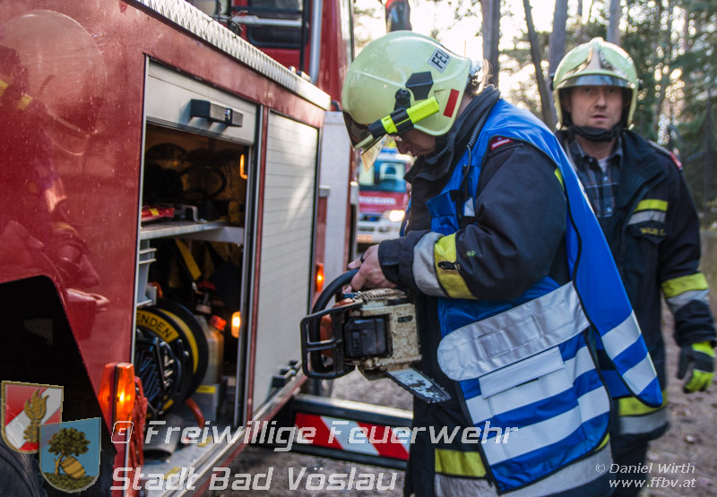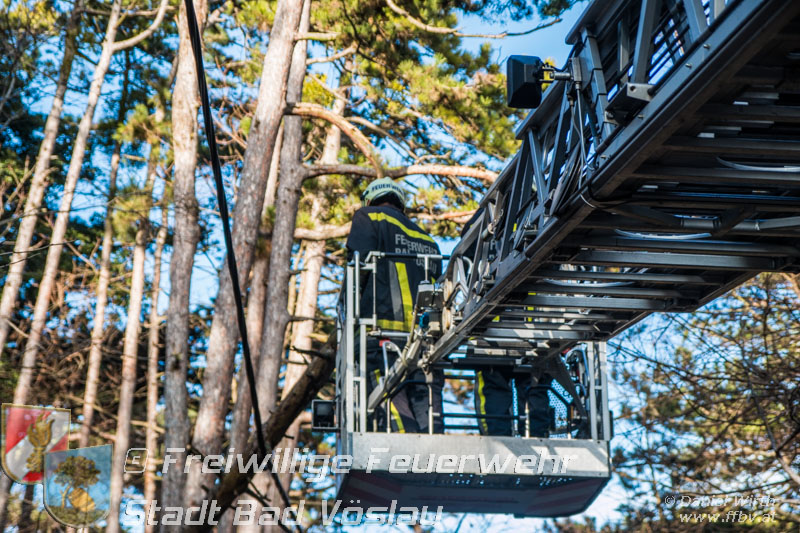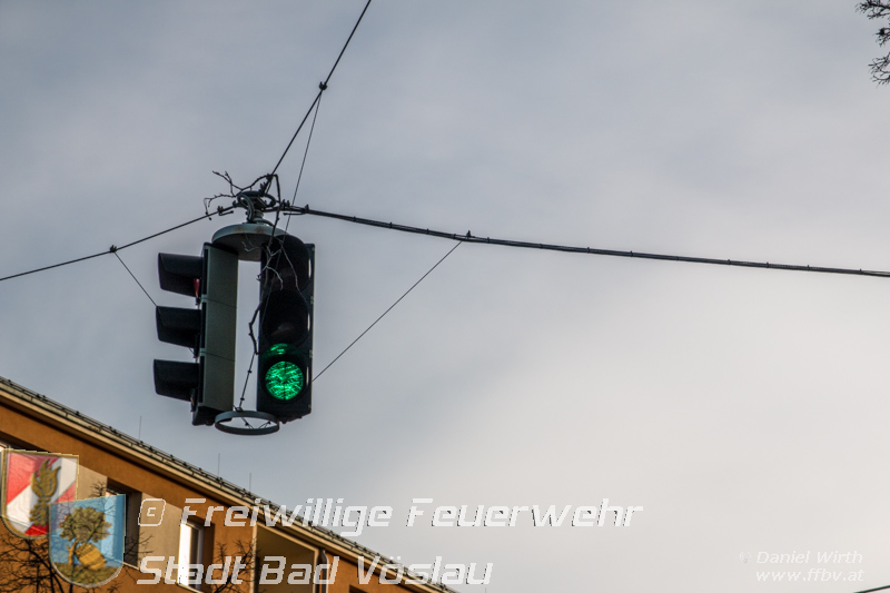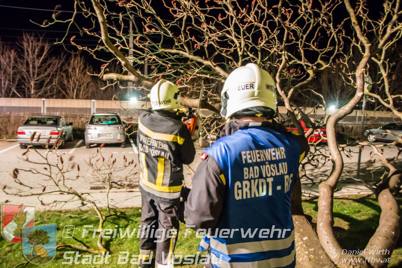 Sturmtief Felix - 7 wetterbedingte Einsätze für die Feuerwehr Bad Vöslau... Am 10. Jänner 2015 kam es in Niederösterreich zu unzähligen wetterbedingten Einsätzen. Sturmtief Felix fegte mit Böen von bis zu 100km/h über das Land und knickte Bäume um oder deckte beispielsweise Dächer ab. In Bad Vöslau kam es zu 7 wetterbedingten Einsätzen. Begonnen hat der Einsatzmarathon gegen 13 Uhr mit einem umgeknickten Baum welcher auf einer Stromleitung zu liegen kam. Von der Freiwilligen Feuerwehr wurde die Straße unter dem hängenden Baum abgesperrt. Nach Verständigung des Energieversorgers wurde der Baum mit der Drehleiter vorsichtig von der Leitung entfernt. Parallel dazu wurde ein umgestürzter Baum gemeldet welcher auf einem Haus liegen soll. Die Erkundung durch den Einsatzleiter ergab jedoch, dass es sich hierbei um eine Falschmeldung handelte. Ein umgestürzter Zaun beschäftigte im Anschluss die Besatzung des Rüstfahrzeuges, dieser wurde wieder aufgestellt und gesichert. Ins Feuerwehrhaus schafften es die Fahrzeuge nicht, zuvor musste noch in Kottingbrunn ein umgeknickter Baum, welcher in einer Astgabel festhing, mit Hilfe der Drehleiter umgeschnitten werden. Zurück aus Kottingbrunn blieb es bei einem Einparkversuch der Einsatzfahrzeuge bevor die Stadtgemeinde einen Ast auf einer Ampelanlage meldete. Der Verkehr auf der Kreuzung musste kurz angehalten werden bevor die Drehleiter in Stellung gebracht werden konnte und der Ast von der Ampel entfernt wurde. In den Abendstunden folgten nochmals 2 Einsätze bei denen, vom Sturm umgelegte, Bäume mit einer Kettensäge zerlegt werden mussten um die Verkehrswege und Gehsteige wieder freizumachen. In den frühen Abendstunden konnten sämtliche Einsätze