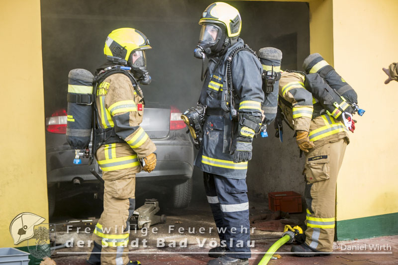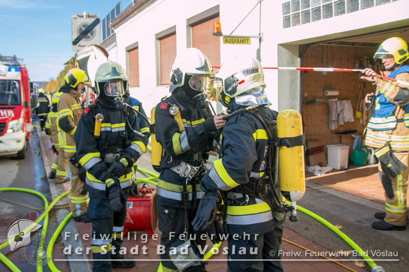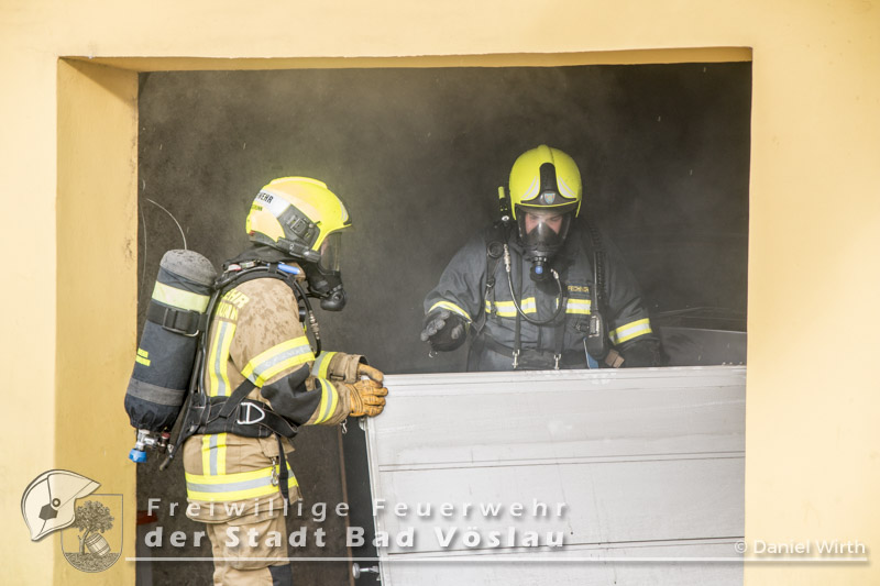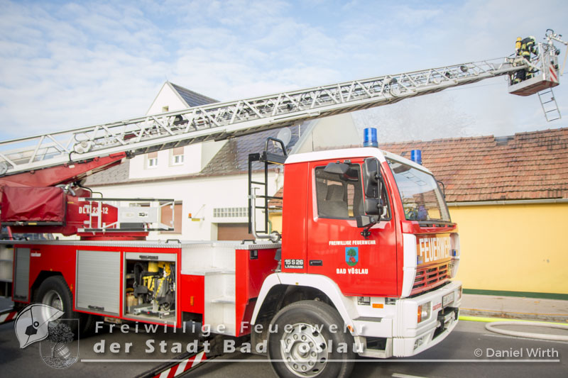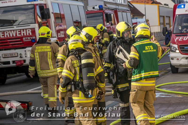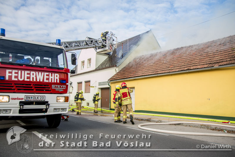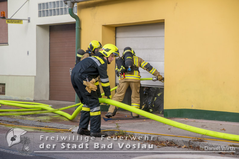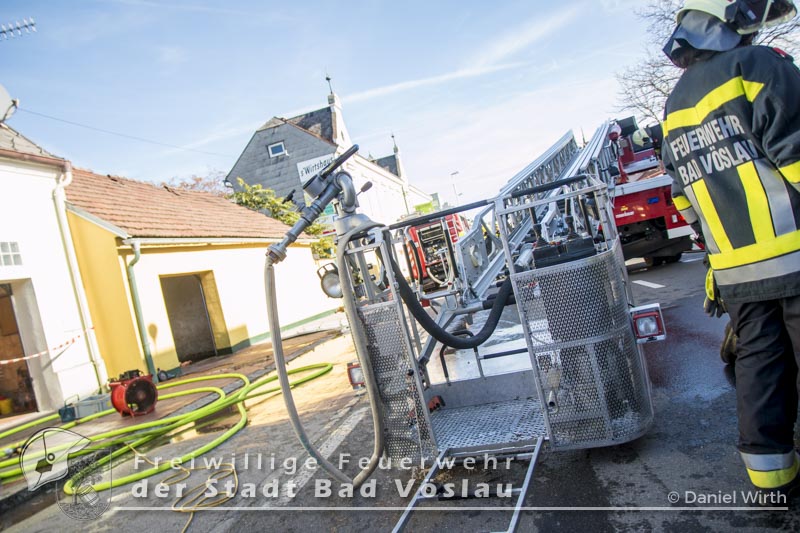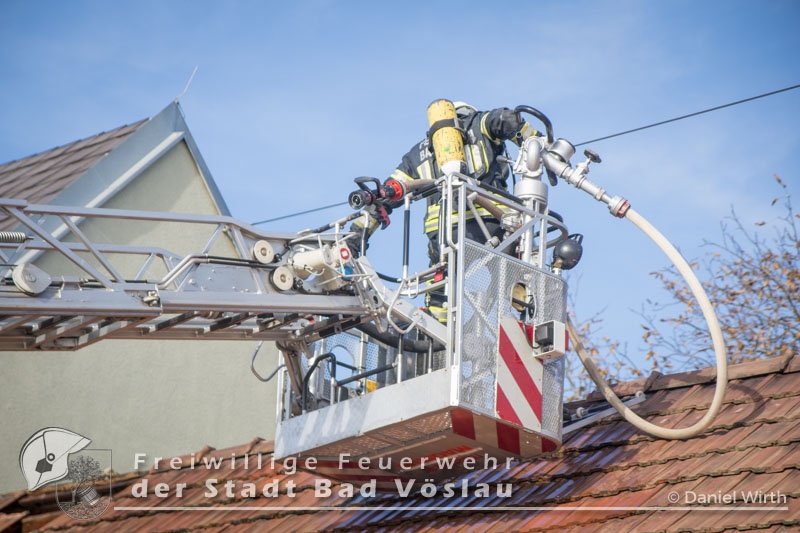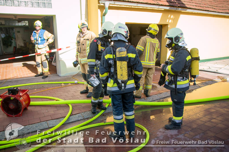 Am 01.11.2016 gegen 09:30 Uhr heulten in Kottingbrunn, Leobersdorf, Schönau an der Triesting und Bad Vöslau die Sirenen. Grund dafür war ein Dachstuhlbrand einer Garage in der Hirtenberger Straße. Bei der Anfahrt konnten schon Rauchschwaden entdeckt werden, auch aus den Dachziegel drang bereits dichter Rauch. Vom ersteintreffenden Rüstlöschfahrzeug Leobersdorf wurde eine Angriffsleitung für den Atemschutztrupp aufgebaut. Gemeinsam mit dem Atemschutztrupp des HLF 1 Kottingbrunn drang der Atemschutztrupp des Rüstlöschfahrzeuges Leobersdorf zum Brandobjekt vor und konnte das Garagentor ein wenig öffnen. Mit gezielten Wasserstößen konnten die Flammen im Inneren in Schach gehalten werden, ehe das Tor entfernt wurde. Sofort begaben sich die Atemschutztrupps ins Innere vor und begannen mit der Brandbekämpfung. Über die Drehleiter Bad Vöslau wurde eine Brandbekämpfung über das Dach auf der Straßenseite vorgenommen, indem mehrere Dachziegel entfernt wurden. Vom Einsatzleitfahrzeug Kottingbrunn wurde in der Zwischenzeit die Einsatzleitung aufgebaut und besetzt. Über den Innenhof wurde ein Atemschutztrupp zur Brandbekämpfung auf das Dach geschickt, welcher ebenfalls begann die Dachziegel zu entfernen. Die angrenzende PKW-Garage wurde aufgebrochen um eine Kontrolle dieses Raumes zu ermöglichen. Aufgrund der vielen Atemschutztrupps wurde vom Atemluftfahrzeug Bad Vöslau mit der Unterstützung der Pumpe Schönau/Triesting ein Atemschutzsammelplatz aufgebaut und die verbrauchten Atemluftflaschen aufgefüllt. Das Nachbarobjekt wurde inzwischen von einem Atemschutztrupp durchsucht und es konnte in einem Zimmer Rauch festgestellt werden. Unverzüglich wurde für dieses Objekt eine Druckbelüftung aufgebaut und das Haus somit rauchfrei gemacht. Da sich in der brennenden Garage viele Lacke und Öle befanden wurde das ablaufende Löschwasser mit diesen Stoffen kontaminiert. Um ein verschmutzen des Kanales zu verhindern wurde ein Kanalabdeckbehälter über den Kanal im Innenhof aufgebaut. Nachdem Brand Aus gegeben werden konnte wurde die beschädigte Garage gepölzt um ein Einstürzen dieses Objektes zu verhindern. Abschließend wurde das kontaminierte Löschwasser, in Absprache mit dem Schadstoffberatungsdienst der Feuerwehr Hirtenberg in einen Tankbehälter gesaugt und entsprechend entsorgt. Insgesamt standen bei diesem Brand 106 Einsatzkräfte, davon 92 Feuerwehrmitglieder im Einsatz. Bericht Melanie Deli, FF KottingbrunnFotos: Daniel Wirth, SB ÖA Beitrag erstellt am: 26.10.2016