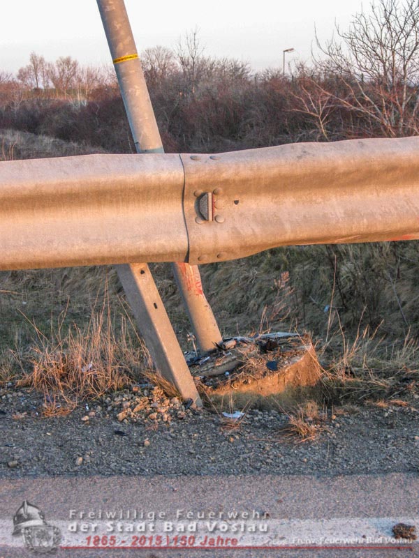 Verkehrsunfall - PKW steckt unter Leitschiene