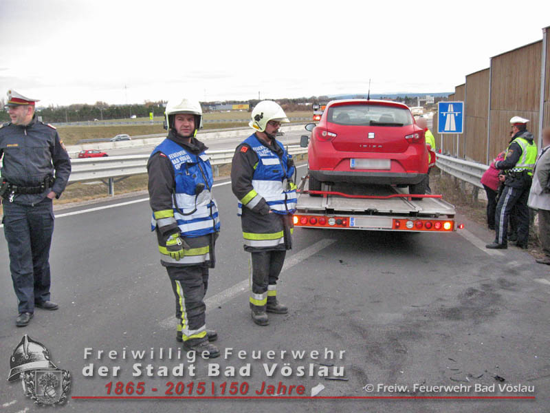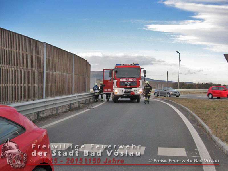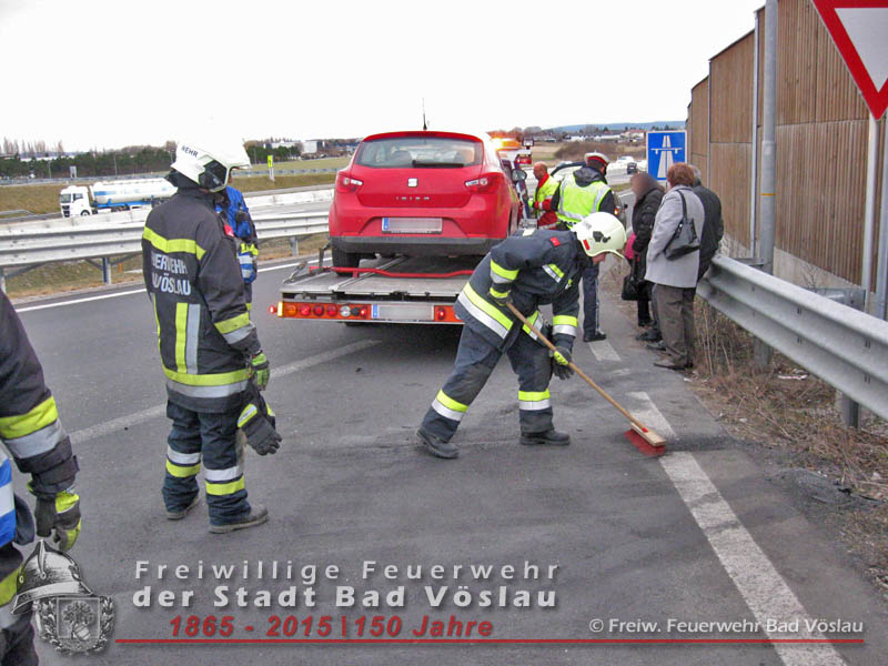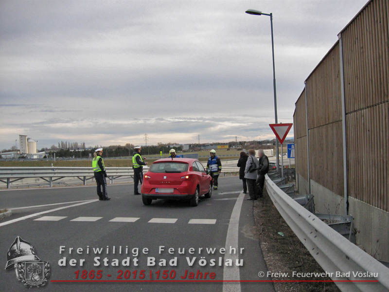 In den Nachmittagsstunden des 4. März 2015 kam es im Bereich des Autobahnzubringers Bad Vöslau zu einem Auffahrunfall zweier Fahrzeuge. Verletzt wurde bei dem Aufprall niemand, ein Fahrzeug wurde von einem Privatunternehmen abgeschleppt, der zweite PKW konnte seine Fahrt fortsetzen. Von der Freiwilligen Feuerwehr der Stadt Bad Vöslau wurde die Unfallstelle abgesichert und die ausgelaufenen Betriebsflüssigkeiten gebunden. Nach einer Stunde konnte die Auffahrtsrampe wieder für den Verkehr freigegeben werden. Bericht: Daniel WirthFotos: Roland Schremser Beitrag erstellt am: 05. März 2015