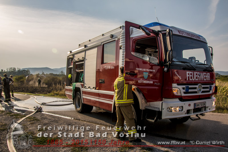 Die große Hitze macht sich schön langsam auch für die Feuerwehren bemerkbar. In ganz Niederösterreich sind die freiwilligen Helfer im Einsatz, um in Brand geratene Felder oder Waldstücke zu löschen. In den Abendstunden des 09.08.2015 war es auch für die Freiwillige Feuerwehr der Stadt Bad Vöslau soweit. Auf der Flugfeldstraße, im Gemeindegebiet von Kottingbrunn,