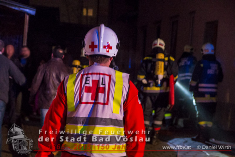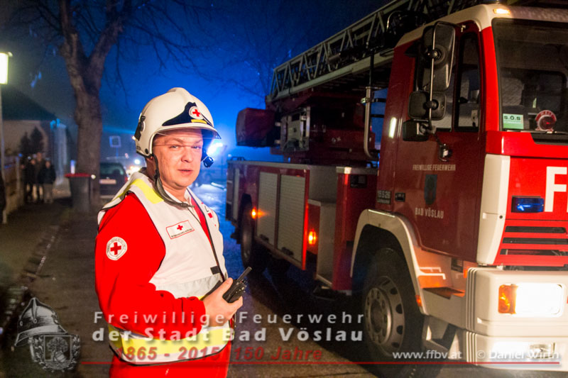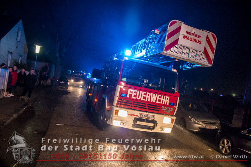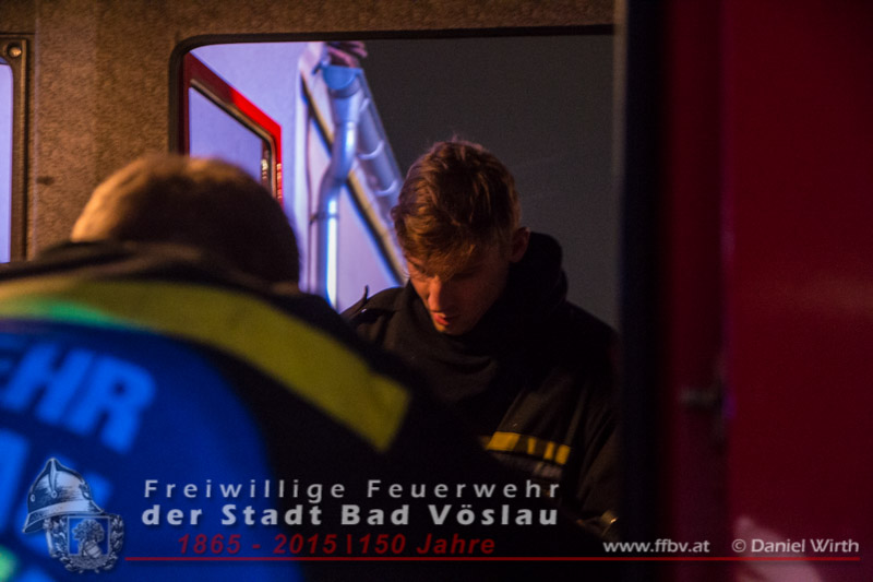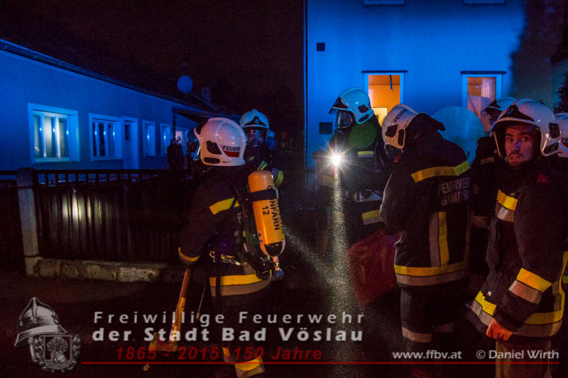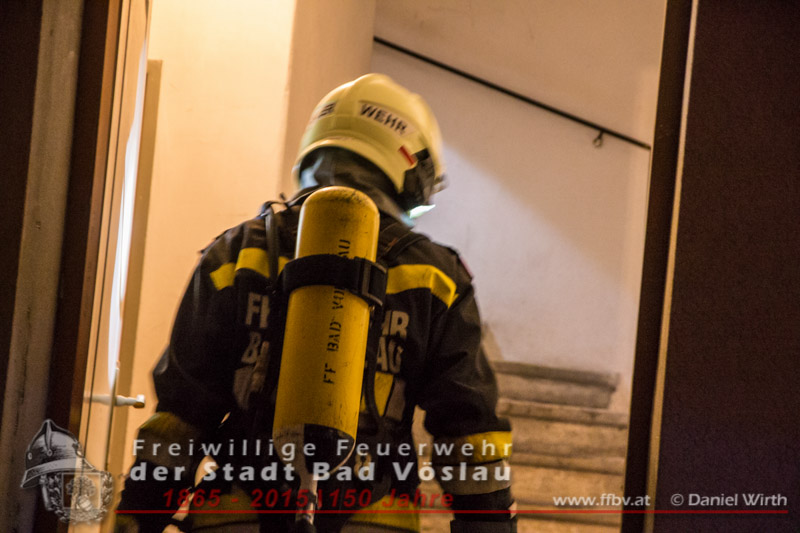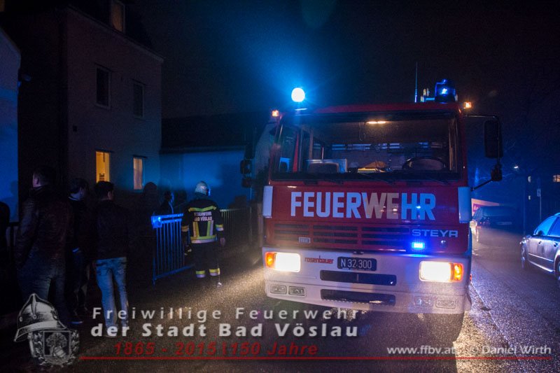 In den Nachtstunden des 19. Dezember 2015 wurde die Freiwillige Feuerwehr der Stadt Bad Vöslau gegen 22:30 Uhr von der Feuerwehr Bezirksalarmzentrale Baden zu einem Wohnungsbrand im Stadtgebiet alarmiert. Als das erste Tanklöschfahrzeug am Einsatzort eintraf, drang Rauch aus der Eingangstüre des Mehrparteienwohnhauses. Da nicht sichergestellt werden konnte ob alle Bewohner das Gebäude bereits verlassen hatten, wurde sofort ein Atemschutztrupp zur Menschenrettung vorgeschickt. Der Brand in einer Küche im Erdgeschoss des 2 geschossigen Gebäudes konnte in Folge mit einer Kübelspritze rasch abgelöscht werden.Zwei Bewohner ein Kind und eine Frau wurden dem Rettungsteam des Roten Kreuzes Bad Vöslau übergeben. Das Kind wurde mit Verdacht auf Rauchgasvergiftung in ein Krankenhaus eingeliefert. Die ebenfalls mitalarmierte