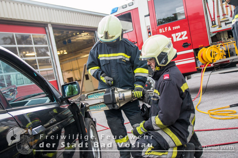 Am 13. Mai 2016 standen die hydraulischen Rettungsgeräte auf dem Übungsplan der Freiwilligen Feuerwehr der Stadt Bad Vöslau. Um den hohen Ausbildungsstandart innerhalb der Mannschaft konstant zu halten wurde bei dieser Übung besonders auf die jüngeren Mitglieder geachtet. Die neuen Feuerwehrfrauen und Männer bekamen einen ersten Eindruck von dem was hinter dem Alarmbild „Menschenrettung mit einer eingeklemmten Person“ steckt. Mit dem hydraulischen Rettungssatz des Rüstlöschfahrzeuges wurde ein PKW von den Jungkameraden regelrecht auseinandergenommen. Besonders wurde hierbei auf das Geräte- und Glasmanagement, die schonende Patientenrettung sowie auf Druck- und Schneidpunkte eingegangen. Auf der anderen Seite zerlegten die erfahreneren Feuerwehrmänner einen weiteren PKW in seine Einzelteile. Hier ging es um die Ersatzbeschaffung des hydraulischen Rettungssatzes im Rüstfahrzeug. Von der Firma Rosenbauer wurden zahlreiche Testgeräte zur Verfügung gestellt, welche natürlich auf Herz und Nieren getestet werden mussten. Wie sich die Mannschaft entschieden hat erfahren sie in einigen Wochen selbstverständlich hier.