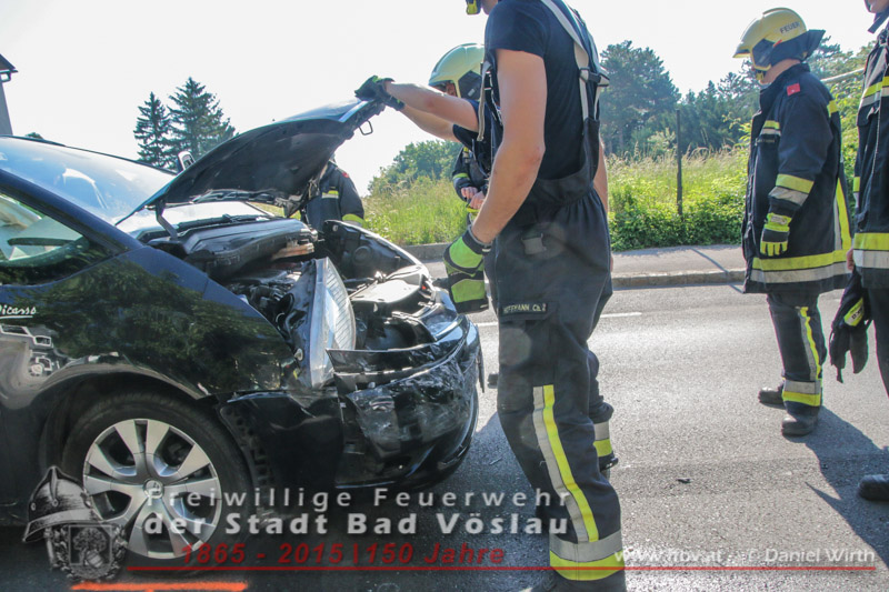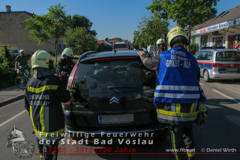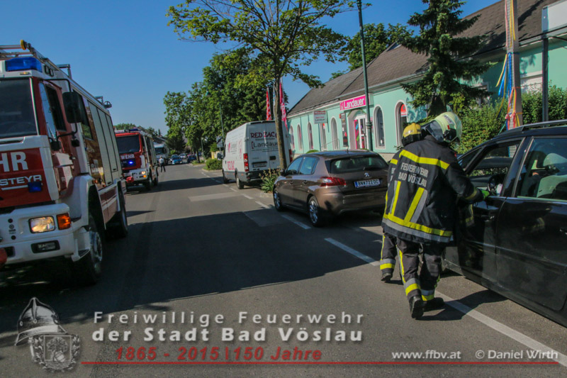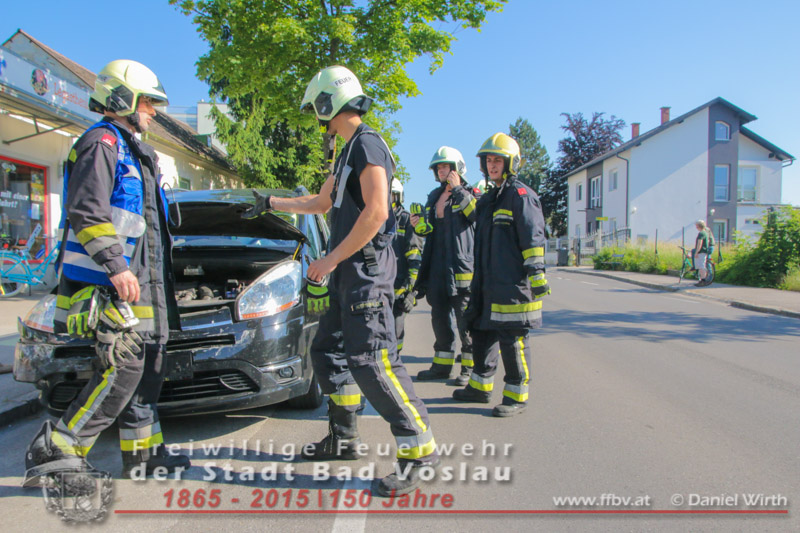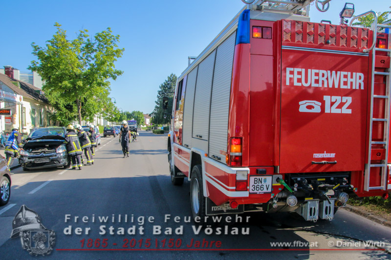 In den Morgenstunden des 06.06.2015 kam es im Stadtgebiet von Bad Vöslau zu einem Verkehrsunfall. Ein PKW prallte aus unbekannter Ursache seitlich gegen einen Geländewagen. Auch während der Vorbereitungsarbeiten für den zweiten Tag des 34. Feuerwehrfestes waren die freiwilligen Feuerwehreinsatzkräfte binnen weniger Minuten an der Unfallstelle eingetroffen. Der ersteintreffende Gruppenkommandant machte sich zu Beginn ein Bild der Lage und ließ umgehend die Unfallstelle absichern. Der Geländewagen konnte noch aus eigener Kraft zur Seite fahren, der PKW musste mit Muskelkraft von der Fahrbahn geschoben werden. Nachdem beide Kraftfahrzeuge gesichert abgestellt waren konnte der Einsatz nach 40 Minuten erfolgreich beendet werden. Fotos und Bericht: Daniel Wirth, SB ÖABeitrag erstellt am: 06.06.2015