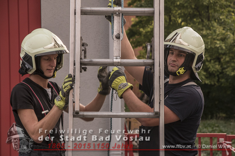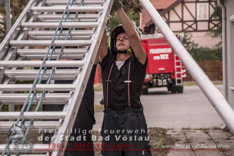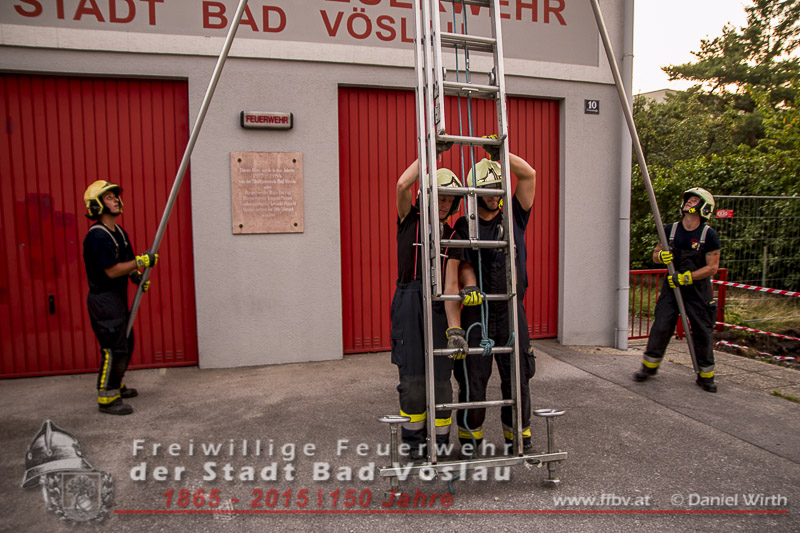 Im Feuerwehrdienst sind unterschiedlichste Arten von Leitern in Verwendung. Die Handhabung mit diesen Geräten will gelernt sein, denn im Ernstfall kommen Leitern oft zur Menschenrettung zum Einsatz. In zwei Gruppen aufgeteilt wurde die zwei und dreiteilige