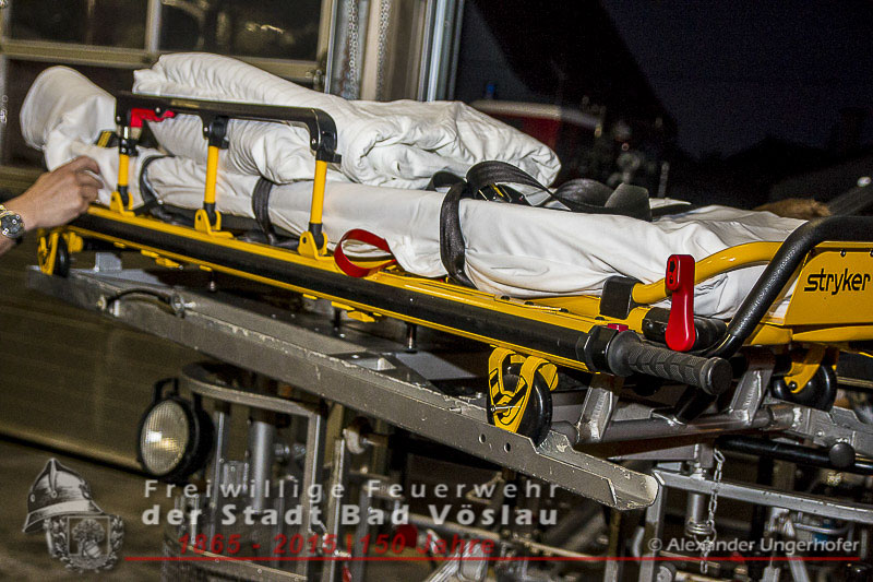 Krankentragenaufnahme. Ein großes Dankeschön geht an die beiden Rettungsorganisationen für die kurzfristige Möglichkeit mit den Fahrtragen zu üben.