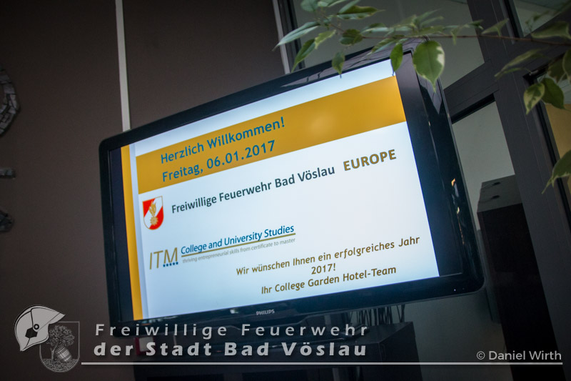 Jahreshauptversammlung 2017 Am 6. Jänner 2017 fand die alljährliche Jahreshauptversammlung der Bad Vöslauer Feuerwehr im College Garden Hotel statt. Die freiwilligen Einsatzkräfte können stolz auf ein