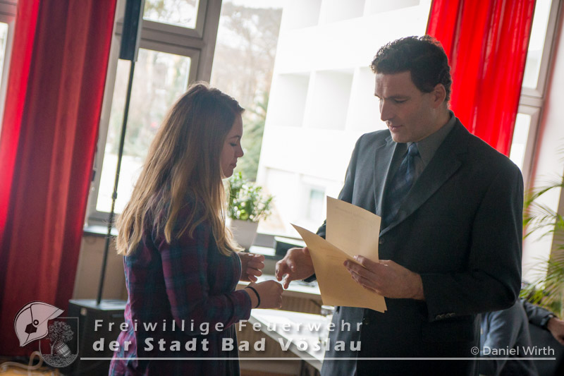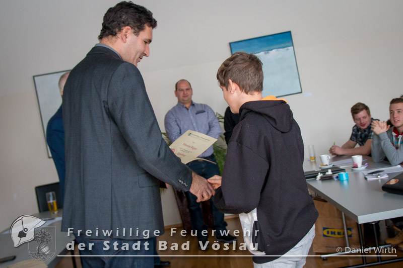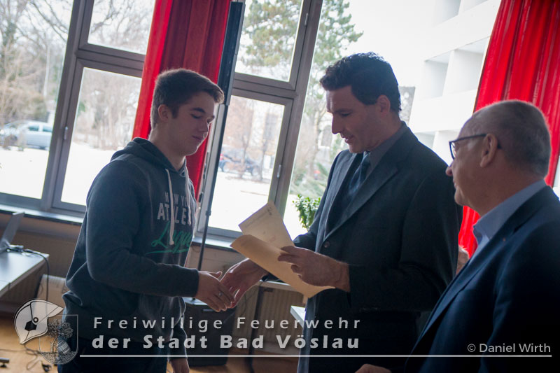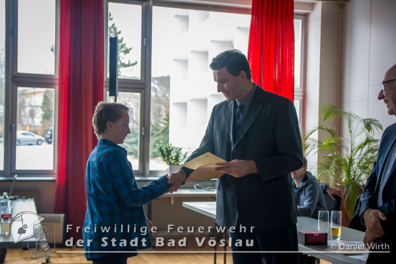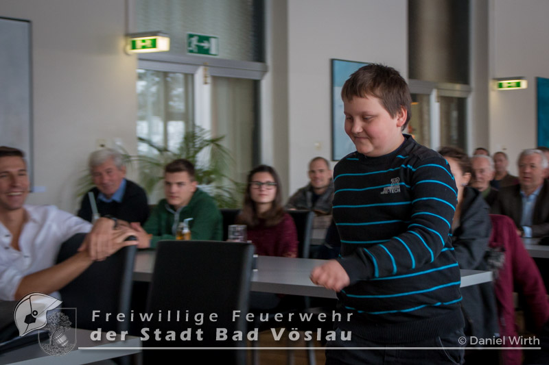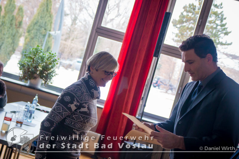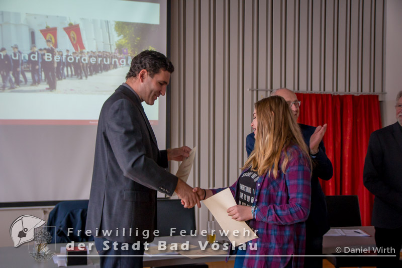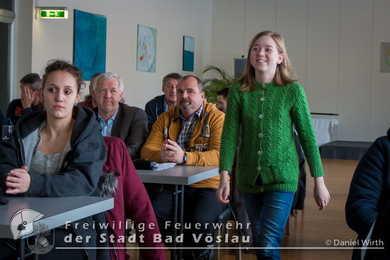 unserer Gabi ein kleines Geschenk zu machen. Neben den Berichten des Kommandanten und der Sachbearbeiter wurden auch Beförderungen und Ehrungen durchgeführt. Aktive Mannschaft: Zu Feuerwehrmännern wurden ernannt: Zu Oberfeuerwehrmännern wurden ernannt: Zum Hauptfeuerwehrmann wurde ernannt: 40 Jahre Mitgliedschaft: Alfred Michalek 65 Jahre Mitgliedschaft: Jägerbauer Franz Feuerwehrjugend: Erprobungsspiel: 1. Erprobung: 2. Erprobung: 3. Erprobung: