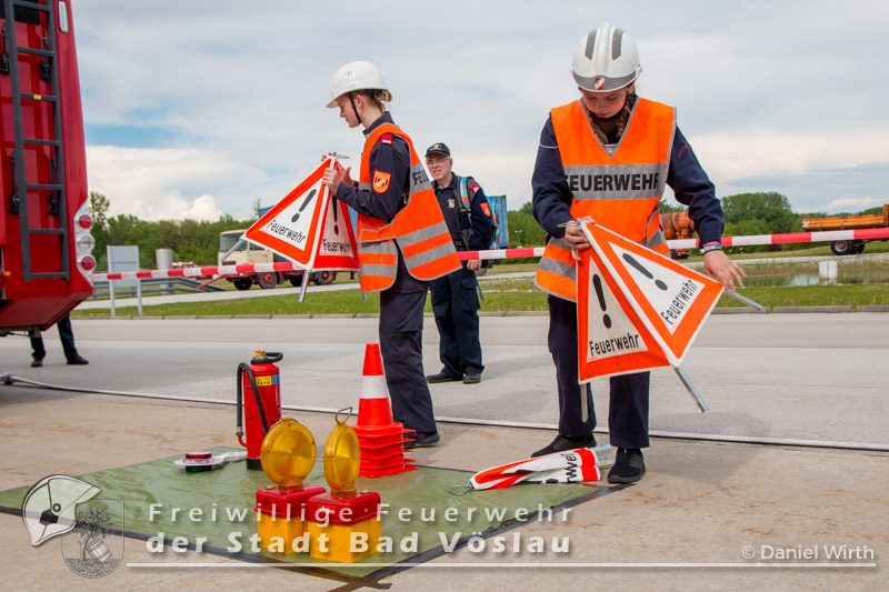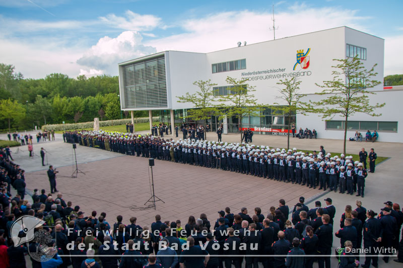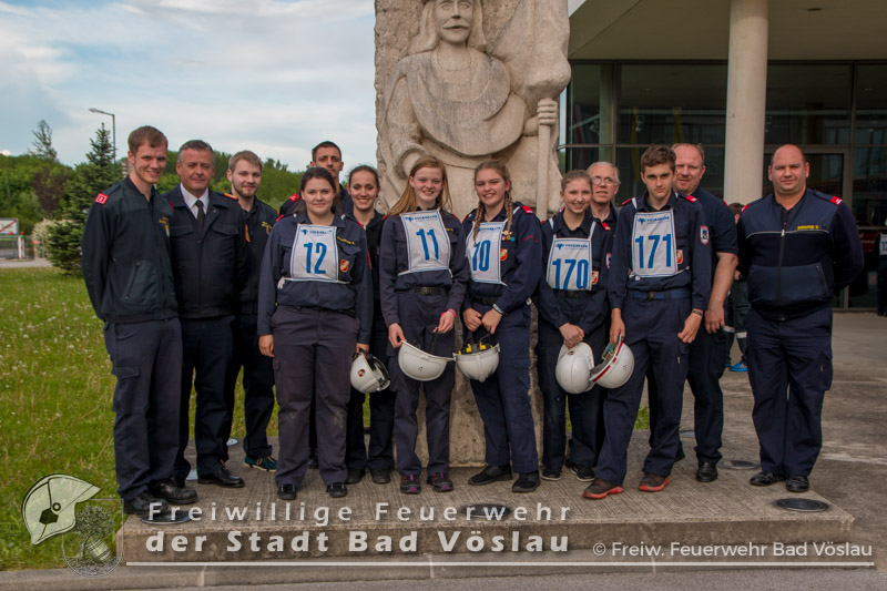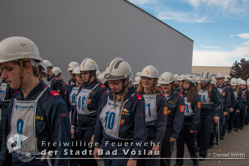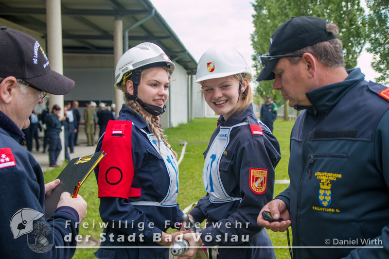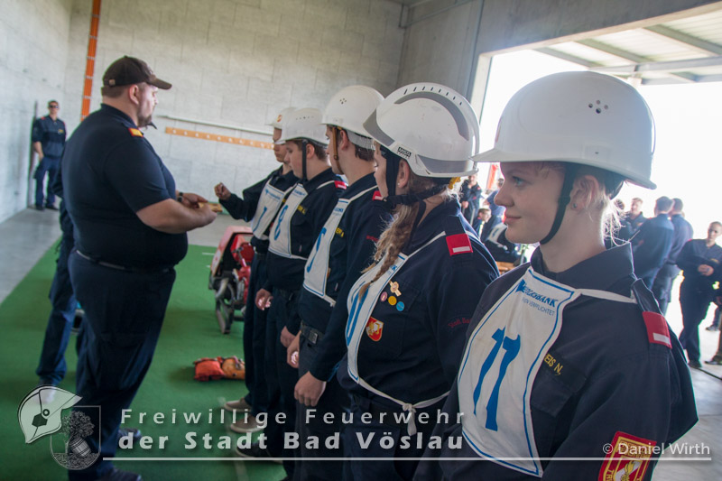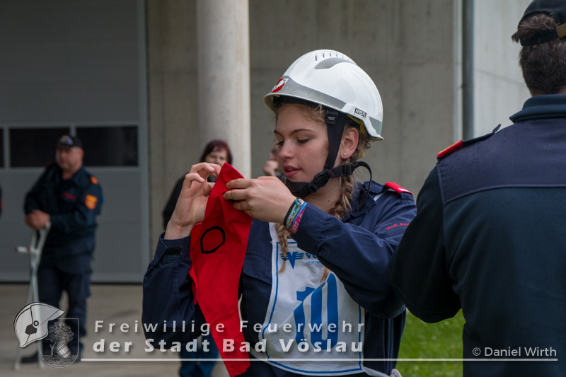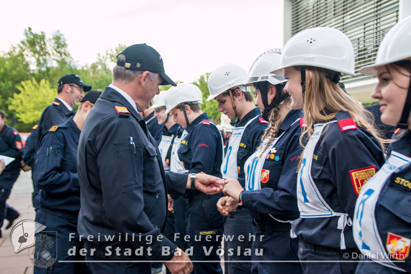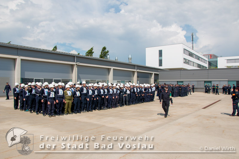 Der Höhepunkt einer Feuerwehrjugend-Karriere. Am 13. Mai 2017 fand in Tulln der 60. Bewerb um das FLA Gold statt. Gemeinsam mit den „Feuerwehrmaturanten“, trat auch die Feuerwehrjugend zum 5. Bewerb um das Feuerwehrjugendleistungsabzeichen in Gold an. Diesmal war auch Janine Schrahböck als erstes Feuerwehrjugendmitglied aus Bad Vöslau unter den Teilnehmern. Der Bewerb um das Feuerwehrjugendleistungsabzeichen in Gold ist für die Feuerwehrjugendmitglieder im Alter vom beginnenden 15. Lebensjahr bis zum 16. Geburtstag die Gelegenheit, das vielseitige Wissen, welches über mehrere Jahre in der Feuerwehrjugend erlernt und gefestigt wurde, zu präsentieren. Die Voraussetzungen für das Antreten sind neben einem 16-stündigen Erste Hilfe Kurs, auch feuerwehrfachliche Themen, die durch die Abzeichen Wissenstest in Gold bzw. Fertigkeitsabzeichen Melder und Feuerwehrtechnik abgeprüft werden, sowie die Kenntnisse der eigenen Feuerwehr. Nach monatelanger Vorbereitung mit den Ausbildern der Feuerwehrjugend und der aktiven Mannschaft, war es um 11 Uhr soweit, Antreten zur Bewerbseröffnung in der Niederösterreichischen Landesfeuerwehrschule in Tulln. Gemeinsam mit 167 anderen Feuerwehrjugendmitgliedern aus ganz Niederösterreich wurden nun Gruppen zu je 25 Bewerbern gebildet und auf die einzelnen Stationen verteilt. Mit der Startnummer 10 ging es für unsere Janine zur theoretischen Prüfung. Aus einem umfangreichen Fragenkatalog mussten einige Fragen mündlich beantwortet werden. Danach ging es gleich weiter zur Station Erste Hilfe. Hier wurde von den Teilnehmern das richtige Verhalten im Notfall erklärt, ein Druckverband angelegt und eine bewusstlose Person in die stabile Seitenlage gebracht. Nun ging es zu den praktischen Aufgaben „Löschgruppe“ und „technische Gruppe“. Absichern einer Unfallstelle gehörte genauso wie ein Löschangriff zu den Aufgaben der Bewerber in diesen Stationen. Als letzte Station musste ein Planspiel „Die Gruppe im Einsatz“ gelöst werden. Gegen 18 Uhr hieß es antreten zur Siegerverkündung. Gemeinsam mit den Feuerwehrmaturanten des FLA Gold marschierten die Feuerwehrmitglieder in den Innenhof der NÖ Landesfeuerwehrschule ein. Das Abzeichen und die Urkunde wurden jedem einzelnen von Landesfeuerwehrkommandant Branddirektor Dietmar Fahrafellner überreicht. Wir gratulieren an dieser Stelle zu dieser ganz besonderen und einzigartigen Leistung!