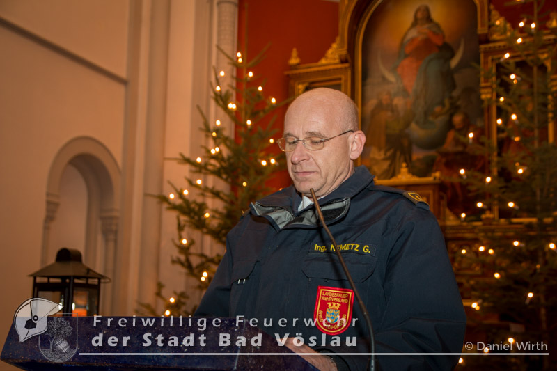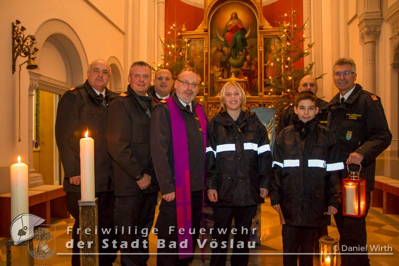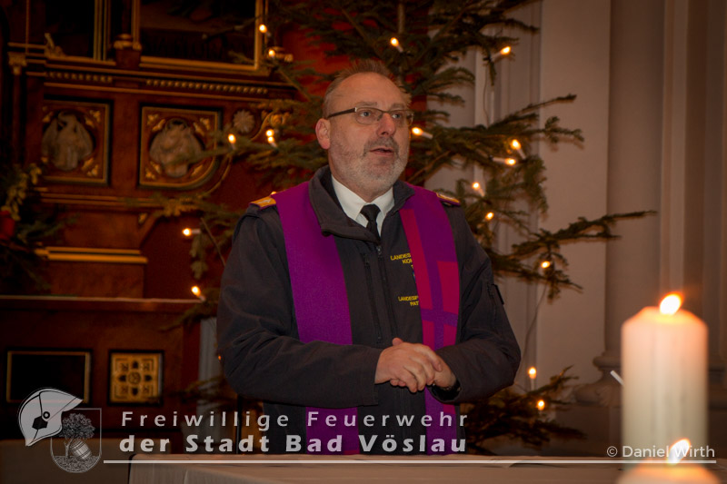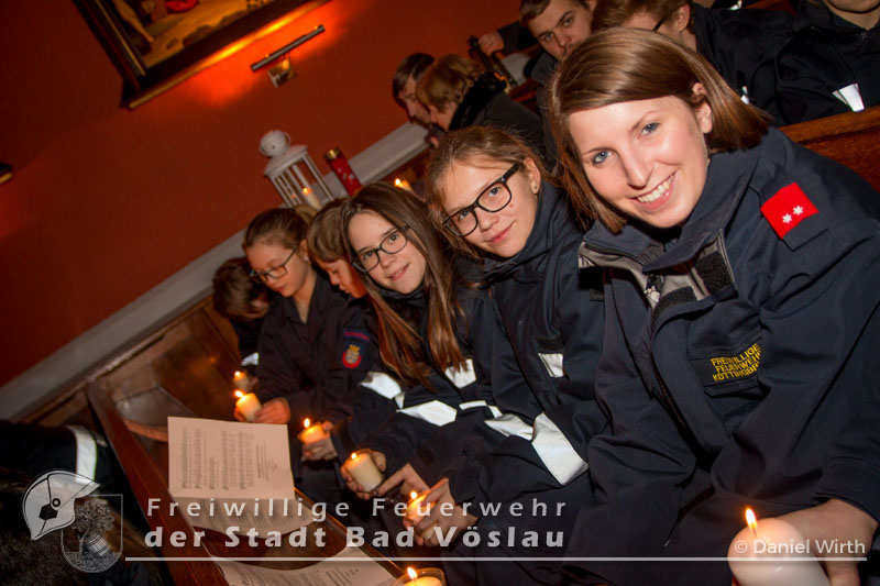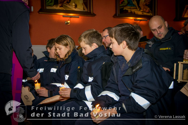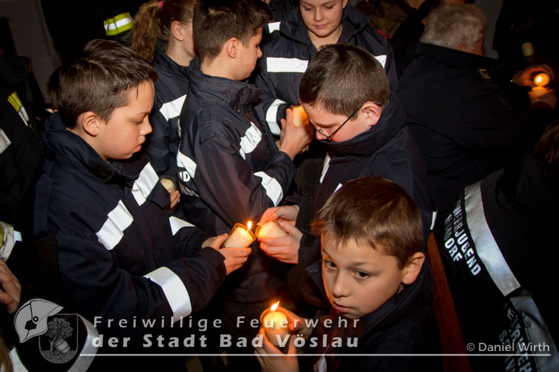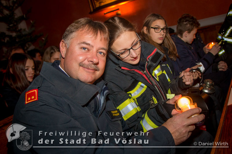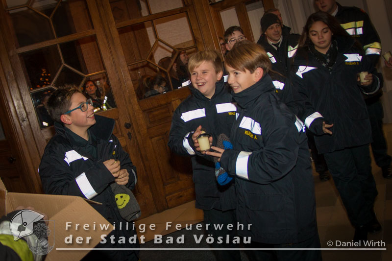 und andere Organisationen in die Bundesländer weiter getragen. In der örtlichen Stadtpfarrkirche konnten neben hunderten Feuerwehrjugendmitgliedern, Feuerwehrkameraden und Privatpersonen, auch Landesfeuerwehrkommandant LBD Dietmar Fahrafellner, Bezirksfeuerwehrkommandant LFR Anton Kerschbaumer und weitere hochrangige Feuerwehrvertreter von Landesfeuerwehrkurat Pater Stephan Holpfer begrüßt werden. Vertreter aus der Politik ließen es sich ebenfalls nicht nehmen, dieser vorweihnachtlichen Veranstaltung beizuwohnen. Um 17 Uhr begann unser Kamerad Pater Stephan mit dem Wortgottesdienst. Er betonte hierbei die momentane Lage in Berlin und der Welt und, dass es nun umso wichtiger ist, dieses Licht und den Frieden in die Welt hinauszutragen. Die Verteilung des Lichtes übernahmen wieder die Kameraden der Freiwilligen Feuerwehr der Stadt Bad Vöslau. Die Kinder und ihre Betreuer warteten geduldig auf die Verteilung und gaben das Licht auch untereinander weiter. Der anschließenden Einladung ins Feuerwehrhaus von Bad Vöslau folgten abermals zahlreiche Jugendgruppen. Die Kameraden der FF Bad Vöslau versorgten alle mit leckerem Essen und einem köstlichen, selbstgemachten Punsch. In diesem Sinne bleibt nur noch - euch und euren Familien, Freunden und Verwandten - frohe Weihnachten zu wünschen!