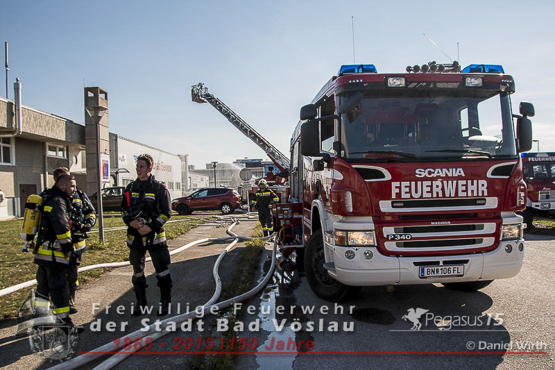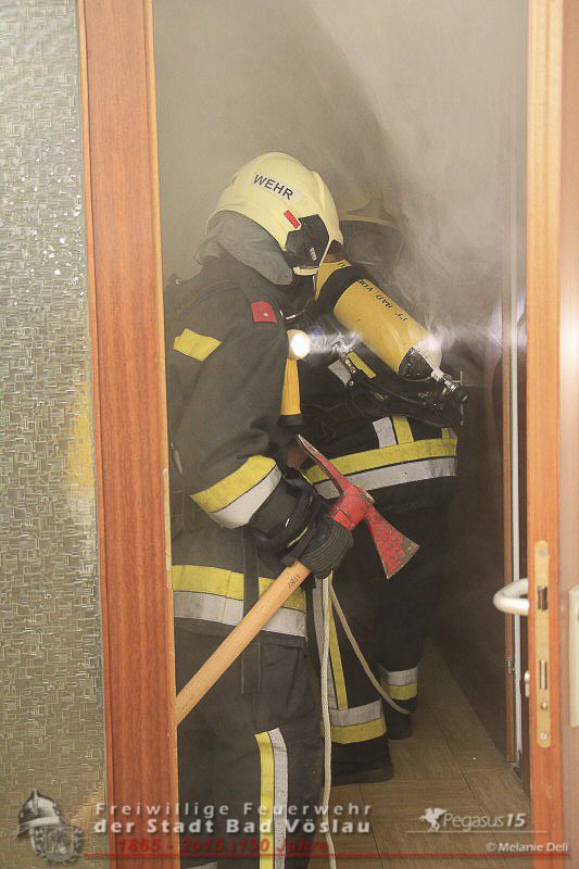 ersteintreffenden Kräfte der Feuerwehr Bad Vöslau begannen unter Atemschutz die