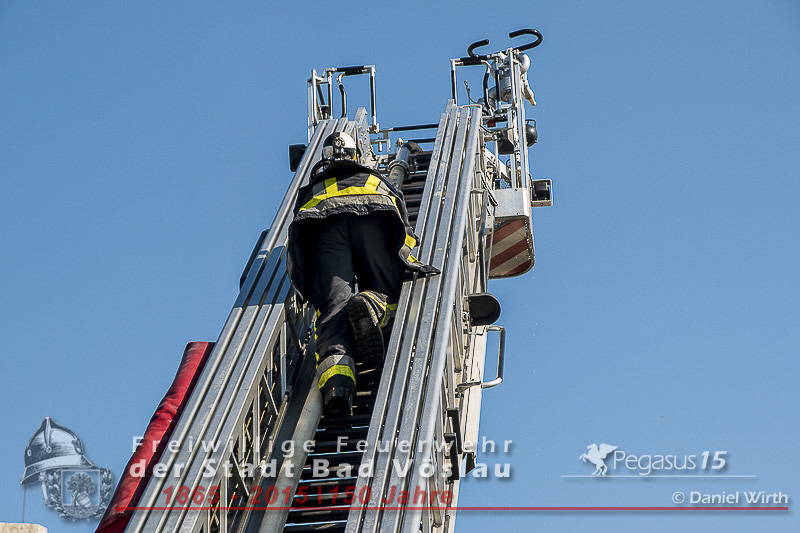 mehreren Rohren und der Drehleiter. Weiters wurde die Einsatzleitung und die