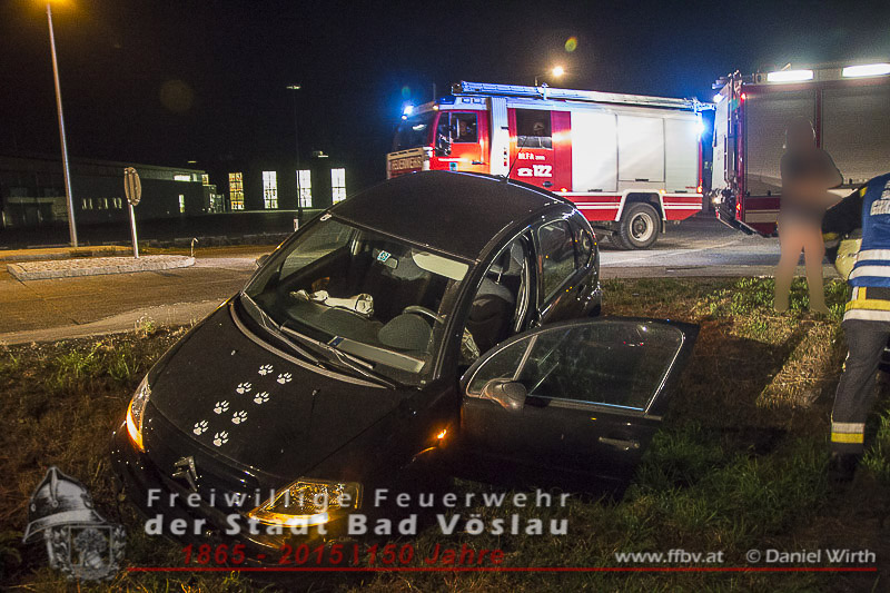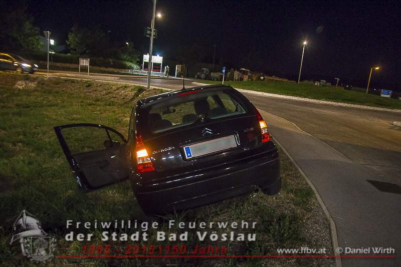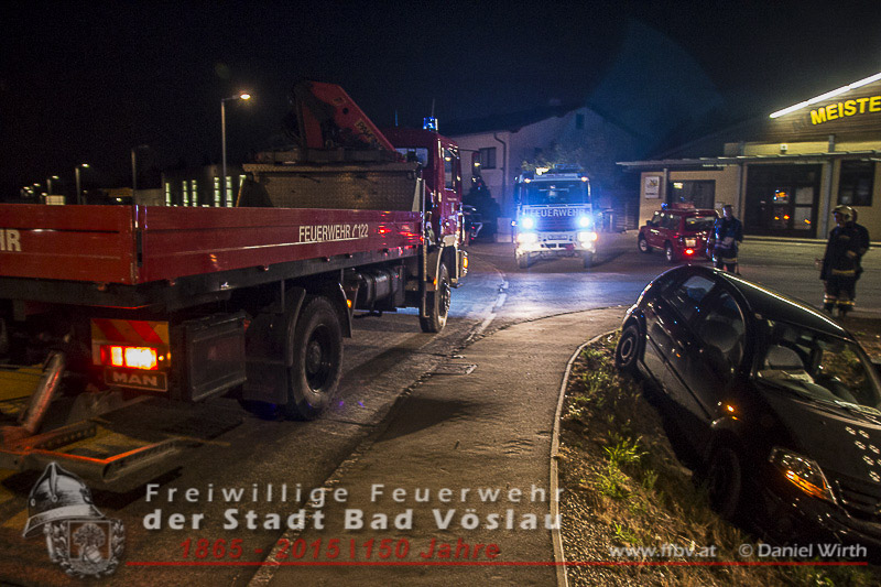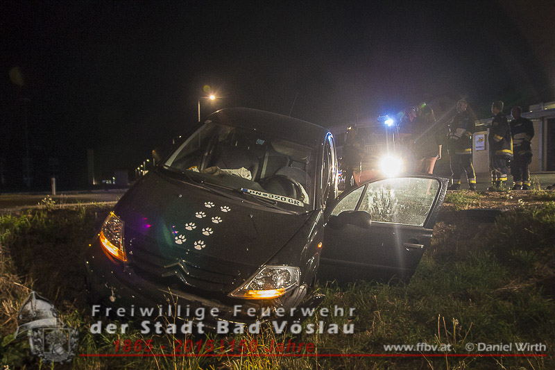 Gegen 21:45 kam im Stadtgebiet von Bad Vöslau ein PKW aus bislang ungeklärter Ursache in einer Rechtskurve von der Straße ab und rutschte über den Gehsteig in einen Entwässerungsgraben. Das Fahrzeug blieb dort hängen und konnte nicht mehr bewegt werden. Der Unfall wurde von anderen Autolenkern bemerkt, die sofort anhielten um Nachschau zuhalten. In der Zwischenzeit wurde die Freiwillige Feuerwehr der Stadt Bad Vöslau zur Fahrzeugbergung alarmiert. An der Unfallstelle angekommen war die Lenkerin bereits aus