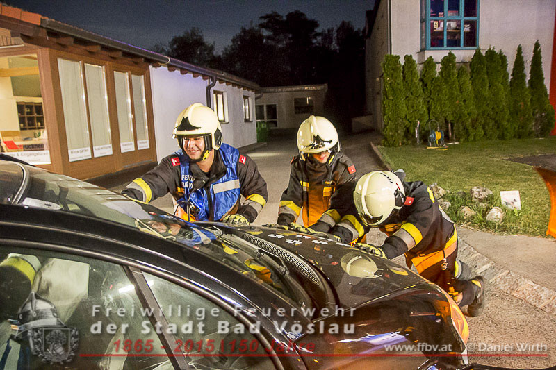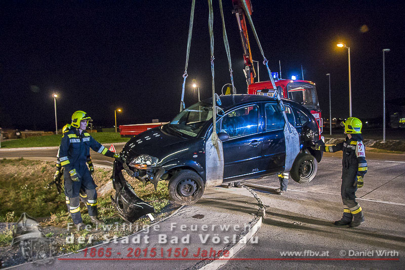 dem Fahrzeug gestiegen, sie wurde bei dem Unfall nicht verletzt. Nach dem das Kraftfahrzeug gesichert abgestellt war und sämtliche Betriebsmittel gebunden waren konnten die beiden Freiwilligen Feuerwehren wieder einrücken. Fotos und Bericht: Daniel Wirth, SB ÖA