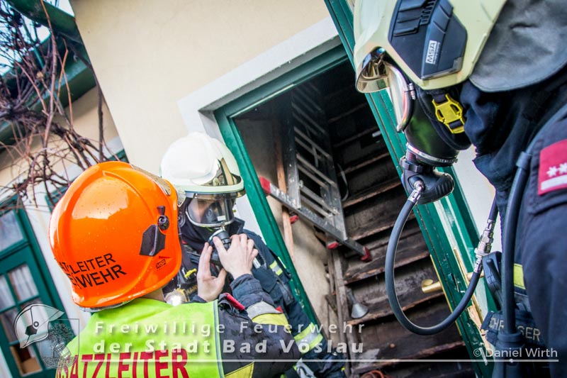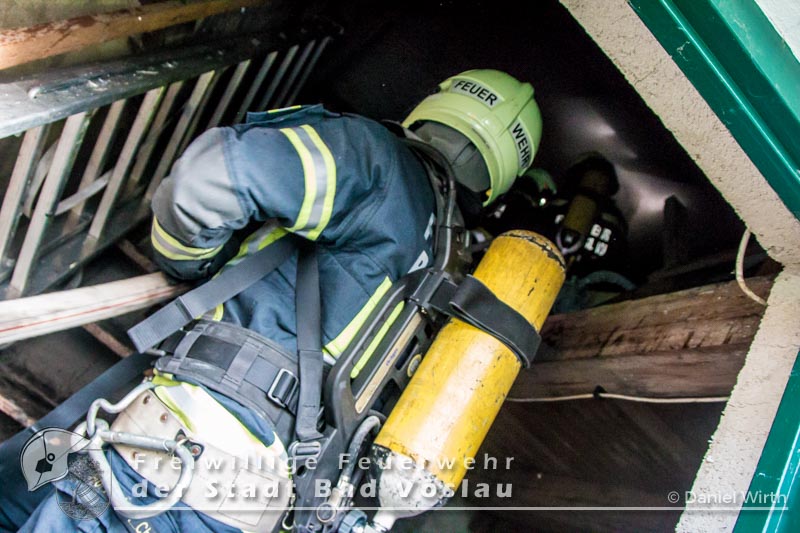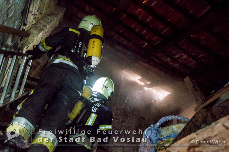 aus. Dort angekommen konnte der Einsatzleiter bereits Flammen aus dem Dachstuhl